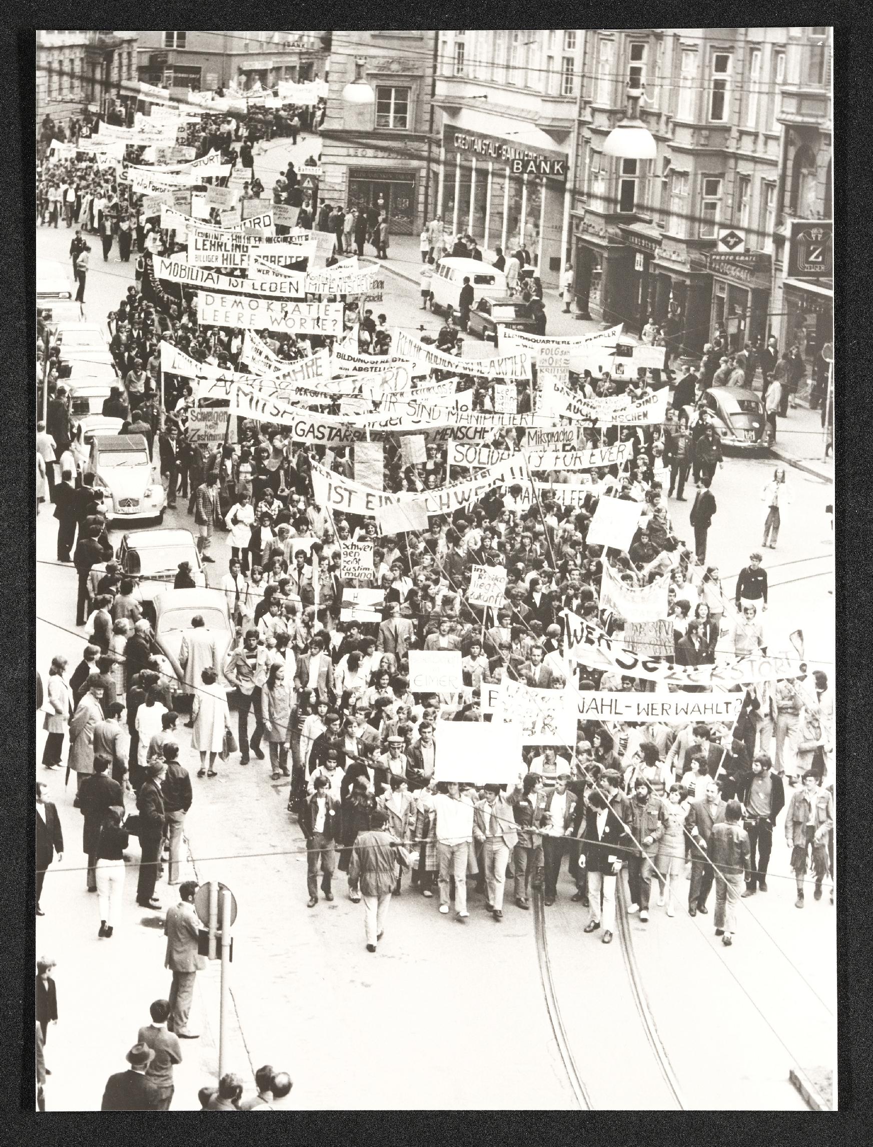 | Beschreibung | Mitbestimmung in der katholischen Kirche. Demonstration in den Straßen Innsbrucks während des Kongresses der Katholischer Arbeiterjugend (KAJ) |