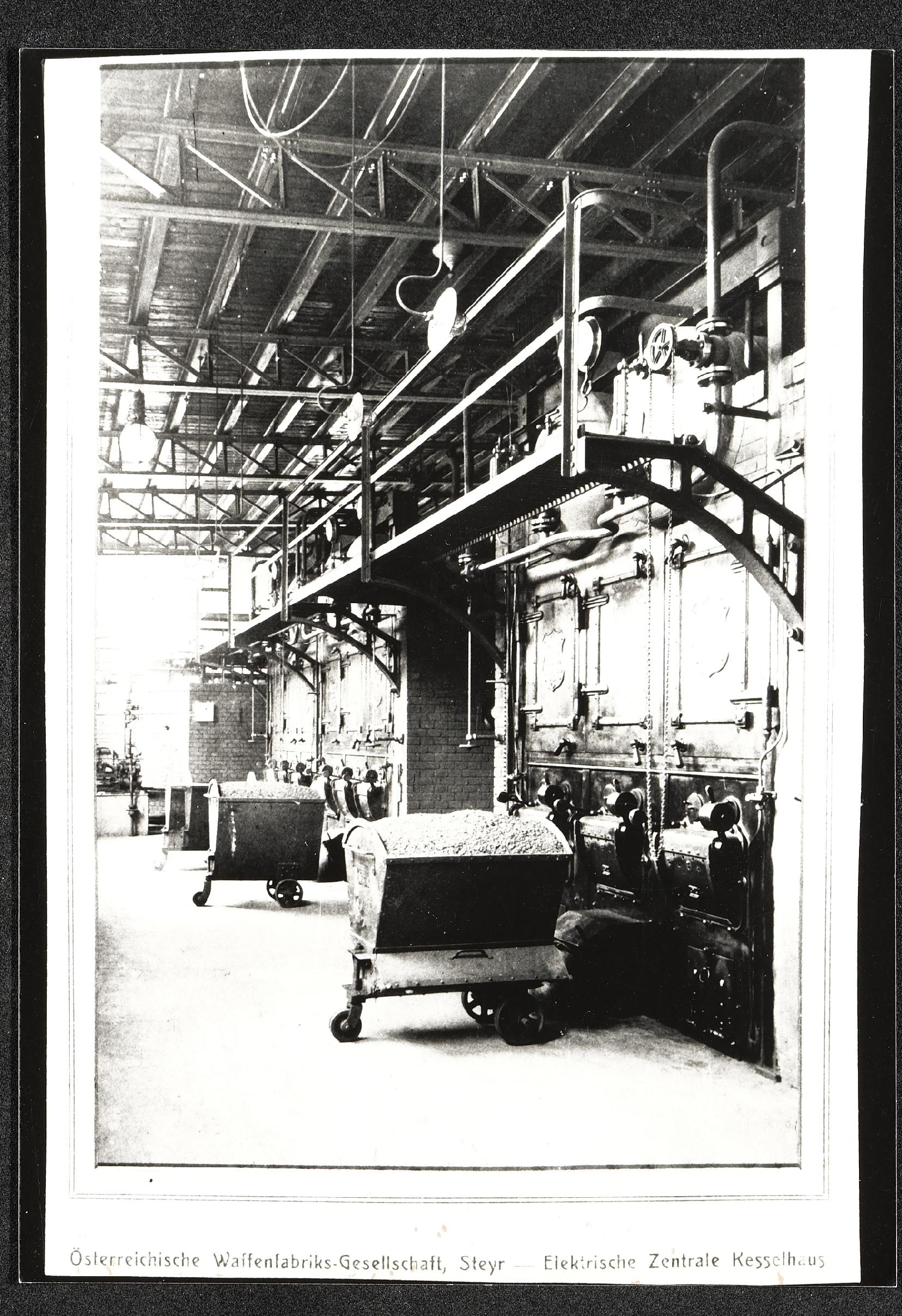 | Beschreibung | Das Kesselhaus der Elektrischen Zentrale der Österreichischen Waffenfabriks-Gesellschaft Steyr (vor 1914) |