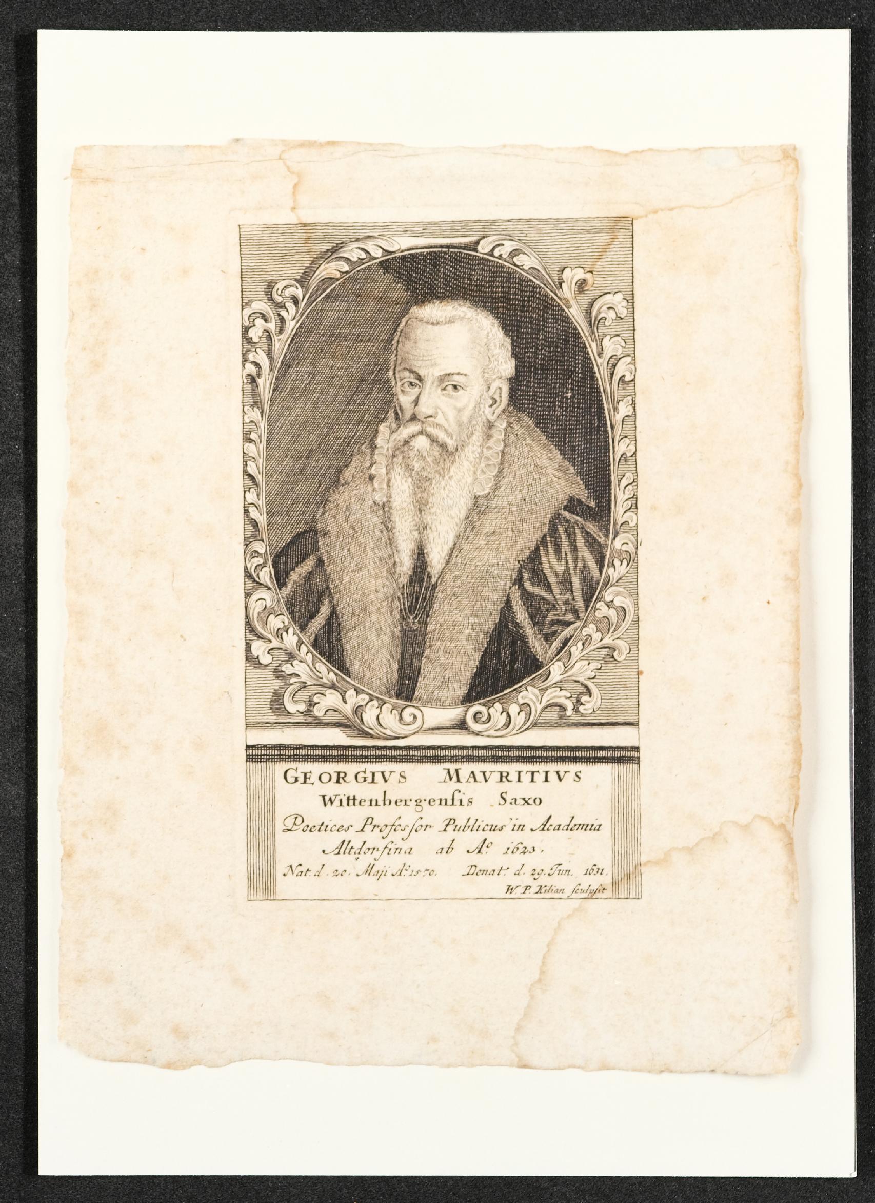 | Beschreibung | Georg Mauritius (*1539, +1610), Rektor der protestantischen Lateinschule in Steyr von 1571 bis 1599. Das Original dieser Zeichnung befindet sich im Stadtmuseum Steyr. |