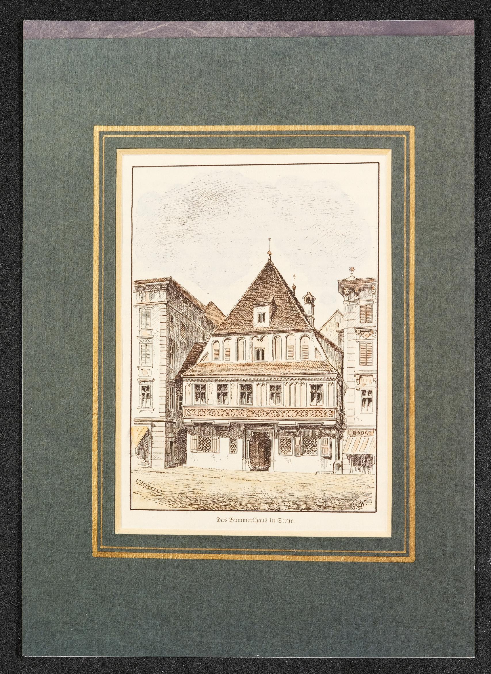 | Beschreibung | Ansicht vom Bummerlhaus am Stadtplatz in Steyr aus dem 19. Jahrhundert |