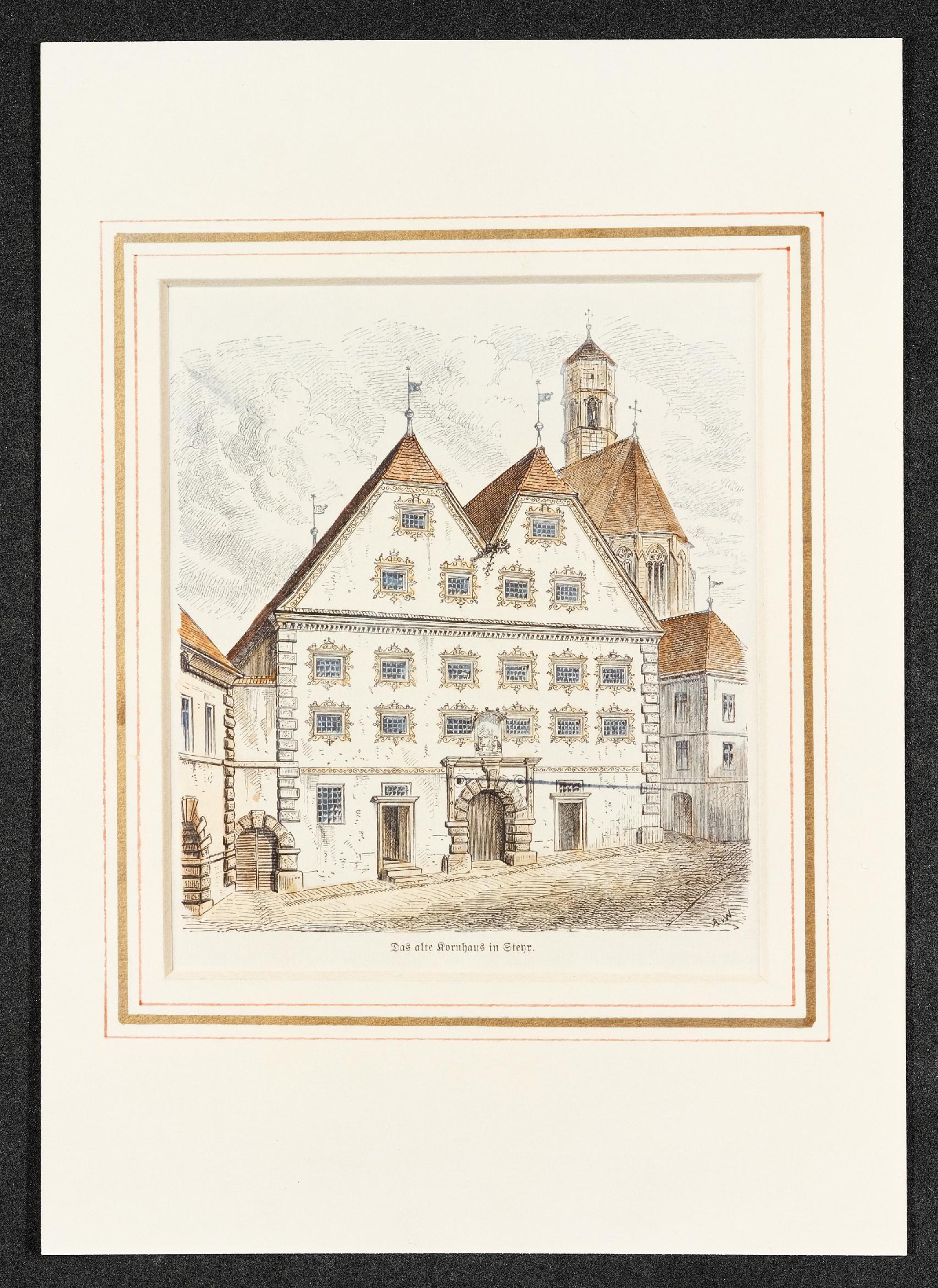 | Beschreibung | Ansicht vom Innerberger Stadel am Grünmarkt in Steyr aus dem 19. Jahrhundert |