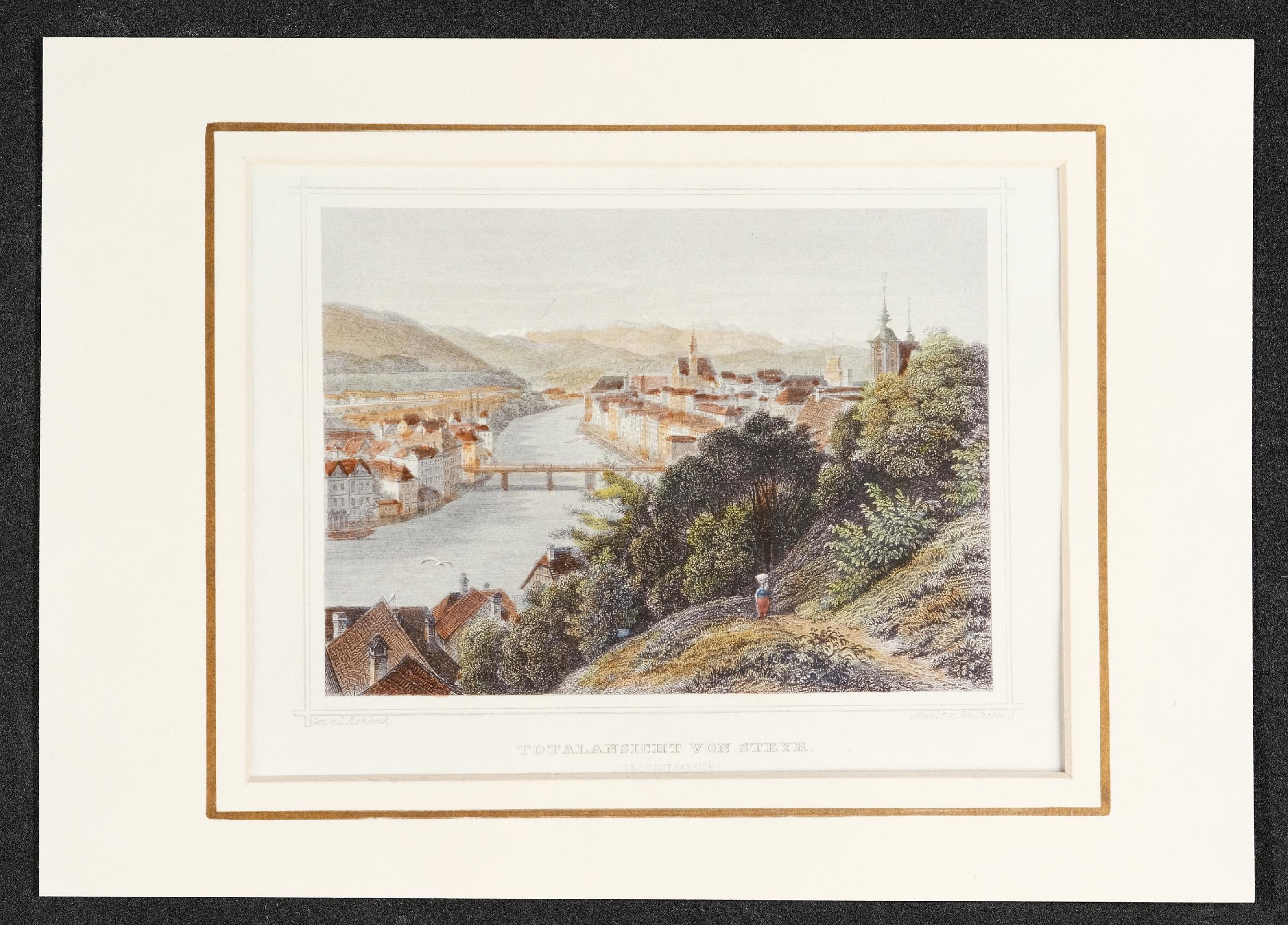 | Beschreibung | Ansicht vom Tabor auf Steyr aus dem 19. Jahrhundert, gezeichnet von Ludwig Rohbock (*1824, +1893), Stahlstich von Johann Poppel (*1807, +1882) |