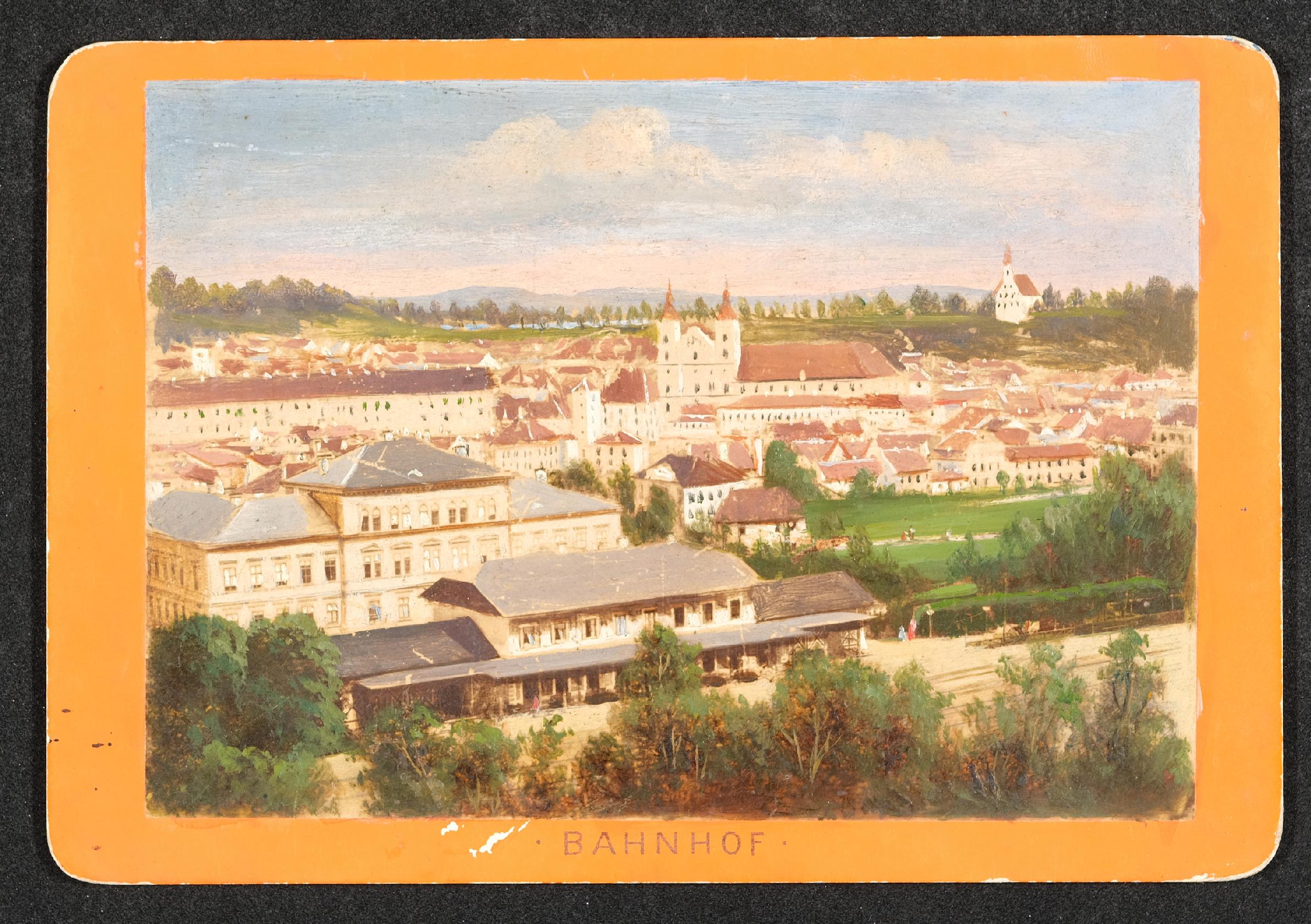 | Beschreibung | Ansicht von Steyr von der Ennsleite aus gesehen - mit Bahnhof - Michaelerkirche - Taborturm |