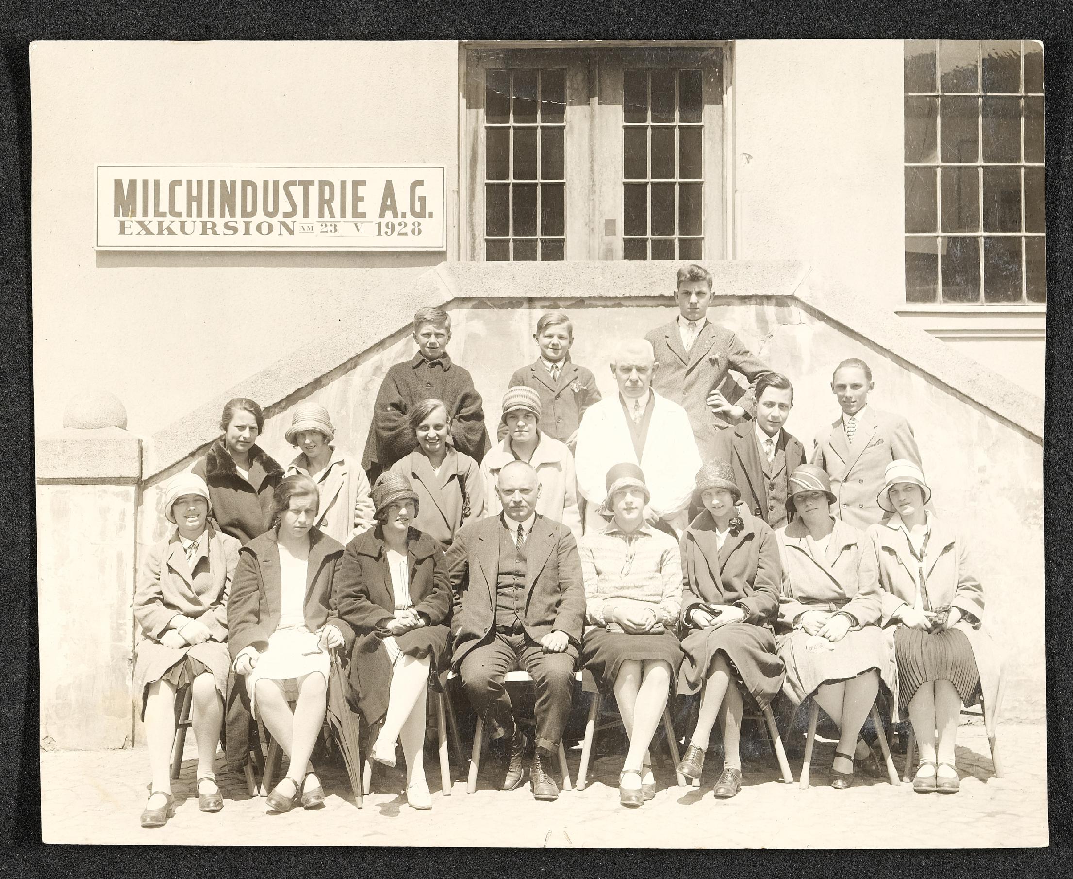 | Beschreibung | Gruppenbild einer Handelsschule bei ihrer Exkursion zur Milchindustrie A.G. in Wien am 23. Mai 1928 |