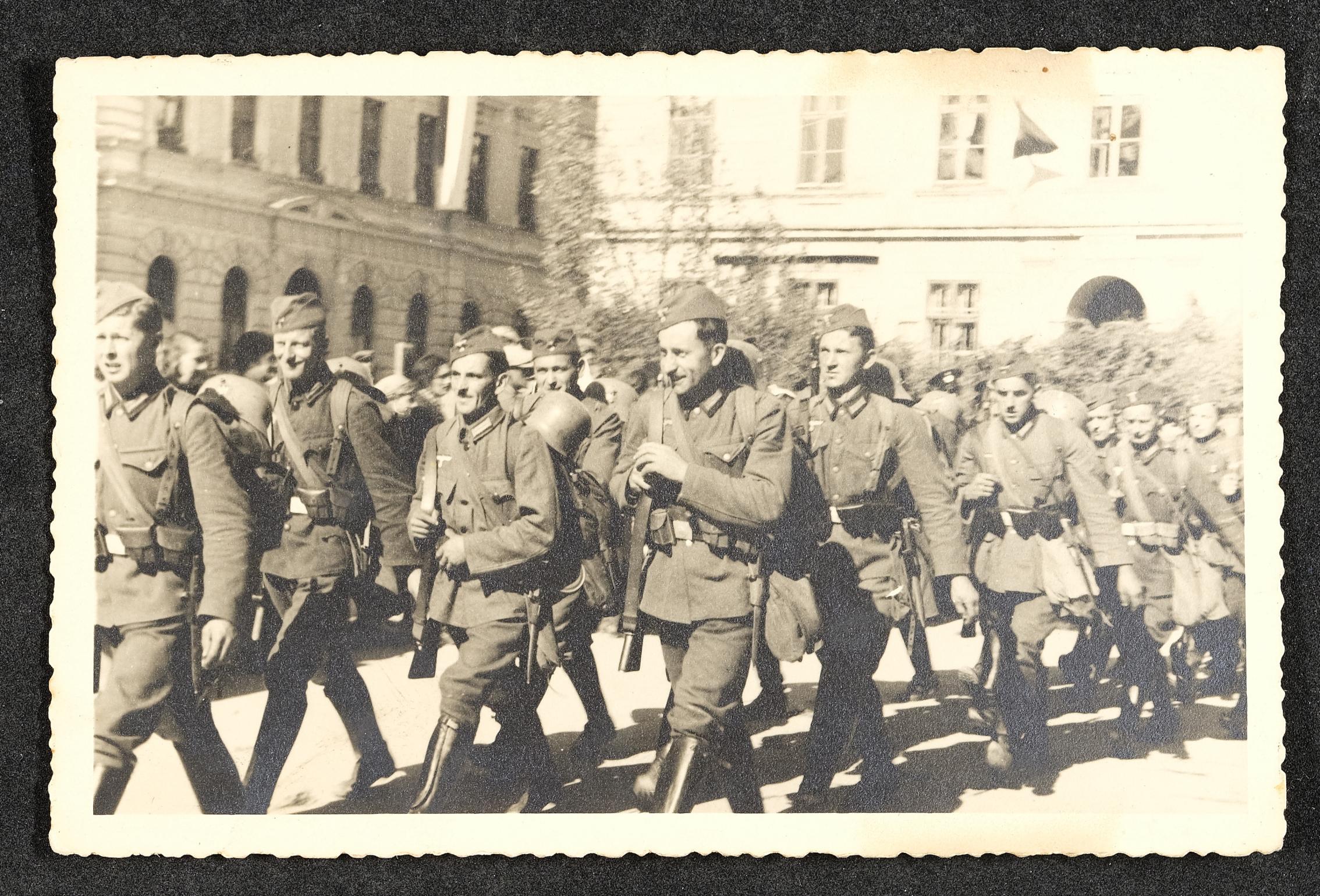 | Beschreibung | Soldaten der Deutschen Wehrmacht in Steyr, Ecke Brucknerplatz - Handel-Mazzetti-Promenade im März 1938 |