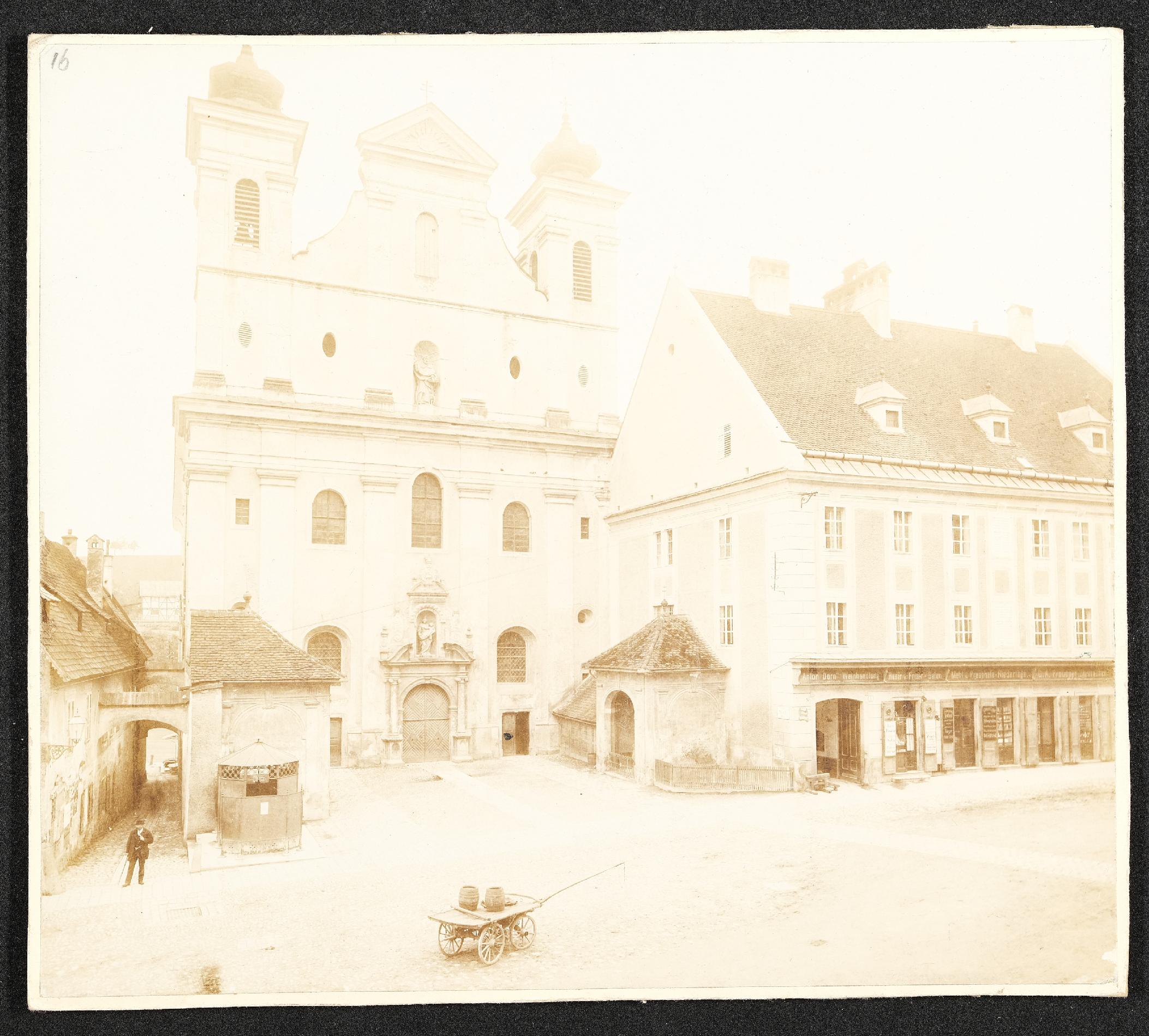 | Beschreibung | Ansicht von Eisengasse (führt hinunter zum Ennskai), Marienkirche (Stadtplatz 41) und Haus Grünmarkt 1 in Steyr |