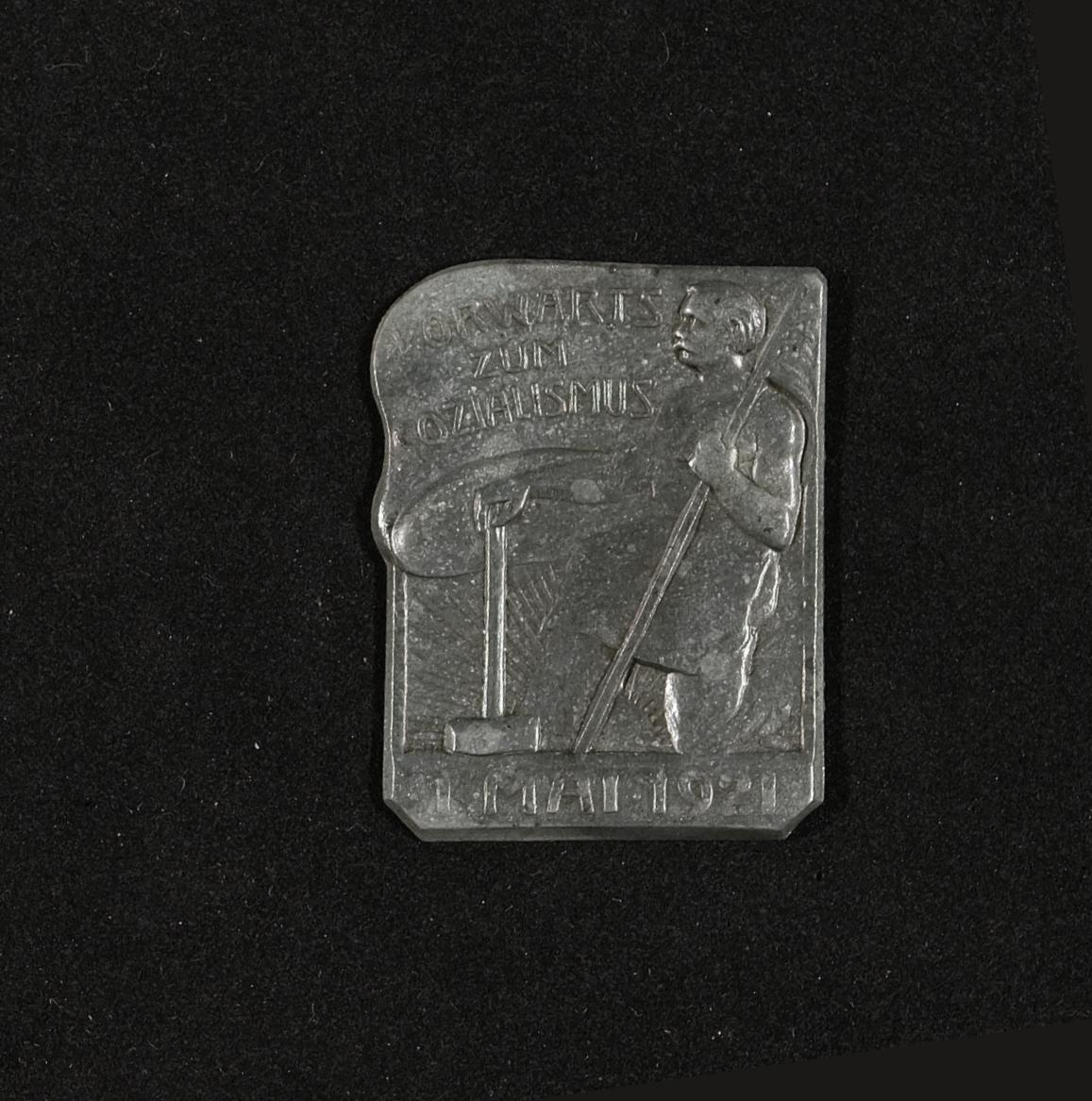 | Beschreibung | Anstecknadel zum 1. Mai 1921, "Vorwärts zum Sozialismus" |