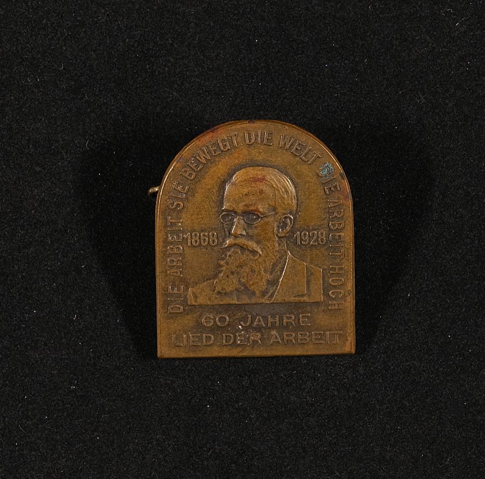 | Beschreibung | Anstecknadel, 60 Jahre Lied der Arbeit, 1868-1928, "Die Arbeit sie bewegt die Welt die Arbeit hoch" |