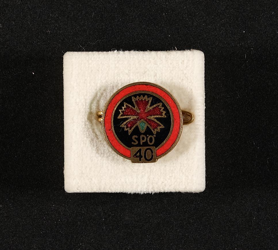 | Beschreibung | Anstecknadel, 40 Jahre Mitgliedschaft, Sozialdemokratische Partei Österreichs (SPÖ) |