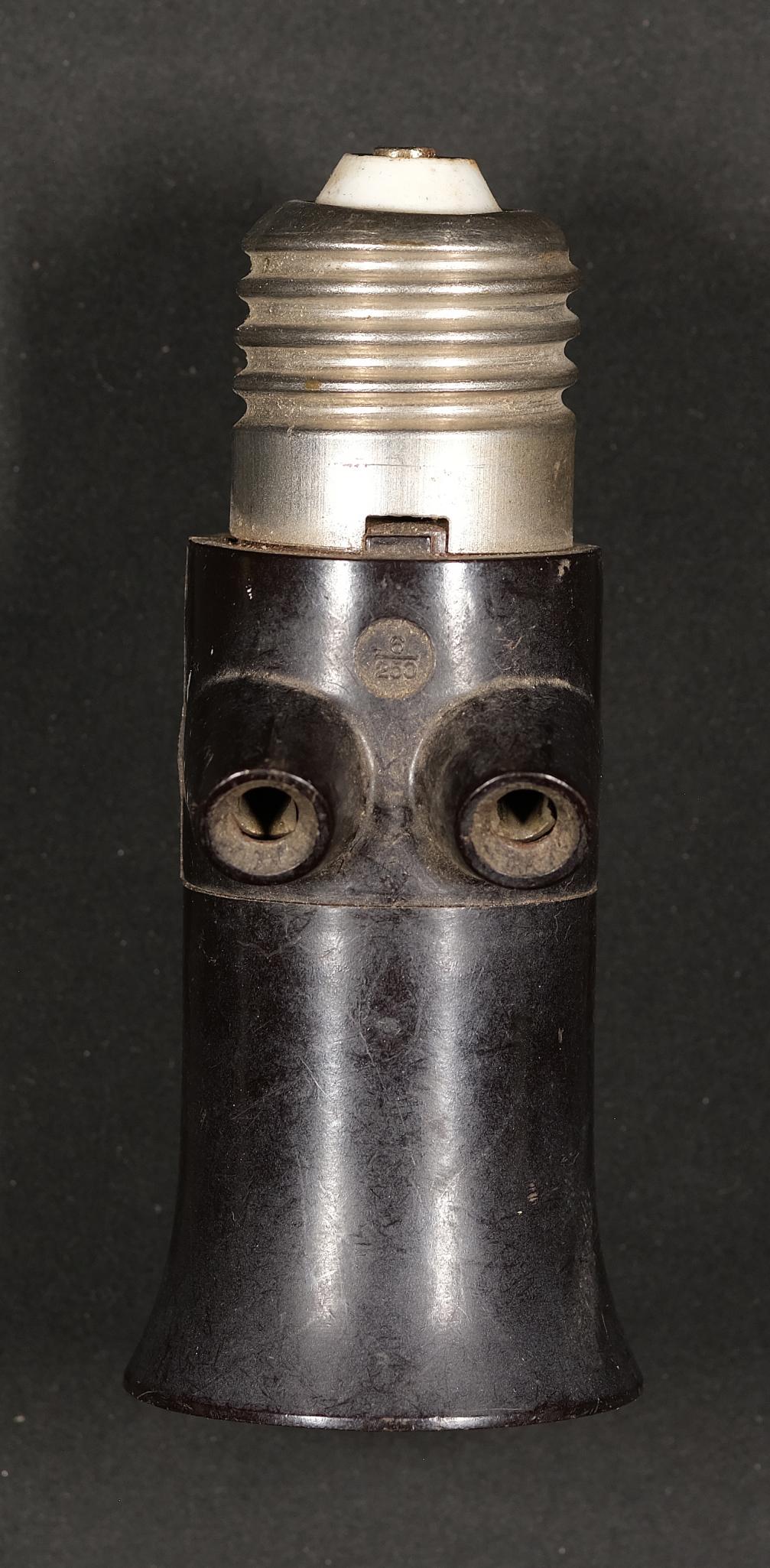 | Beschreibung | Stromdieb, Lampensteckdose, Adapter der in eine Glühlampenfassung eingeschraubt wurde um eine zusätzliche Steckverbindung zum Stromnetz bereitzustellen. |