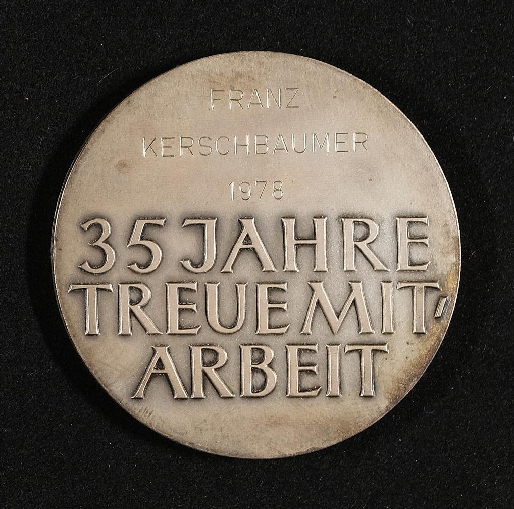 | Beschreibung | Medaille der Handelskammer, für 35 Jahre treue Mitarbeit, Franz Kerschbaumer , 1978 |