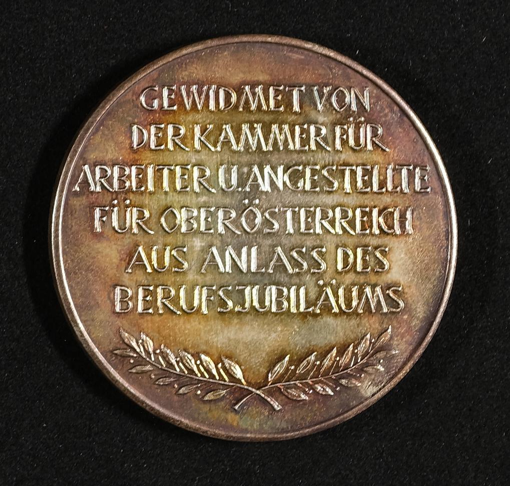 | Beschreibung | Medaille gewidmet von der Kammer für Arbeiter und Angestellte Oberösterreich aus Anlass des Berufsjubiläums |