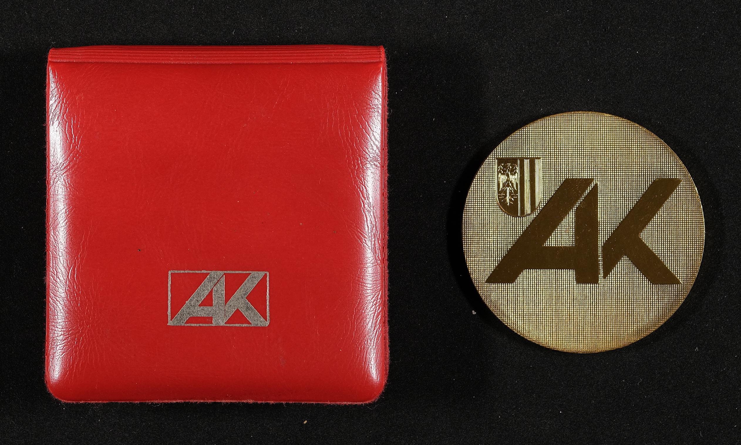 | Beschreibung | Medaille der Kammer für Arbeiter und Angestellte Oberösterreich für 35 Jahre Berufsjubiläum, Hubert Müller, Steyr-Daimler-Puch AG; Rückseite mit der Aufschrift 35 Jahre im Dienste der Volkswirtschaft |
