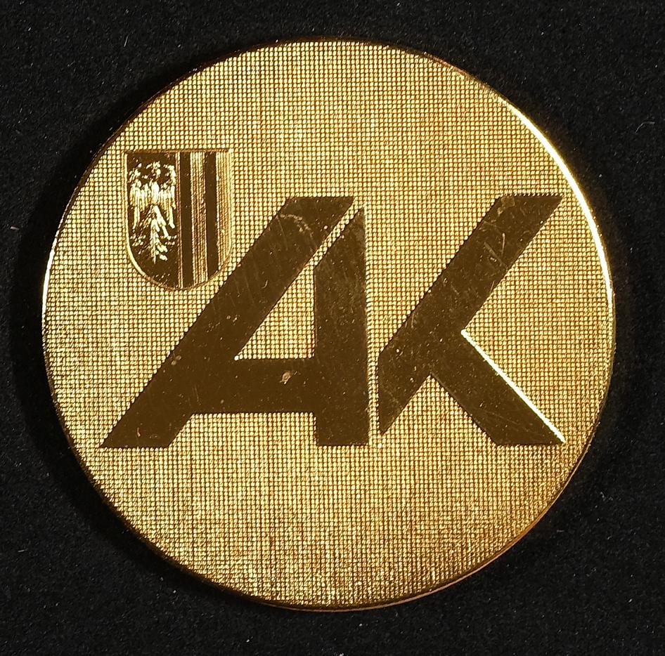 | Beschreibung | Medaille der Kammer für Arbeiter und Angestellte Oberösterreich für 35 Jahre Berufsjubiläum, Rückseite mit der Aufschrift 35 Jahre im Dienste der Volkswirtschaft, Franz Hoscher, Steyr-Daimler-Puch AG |