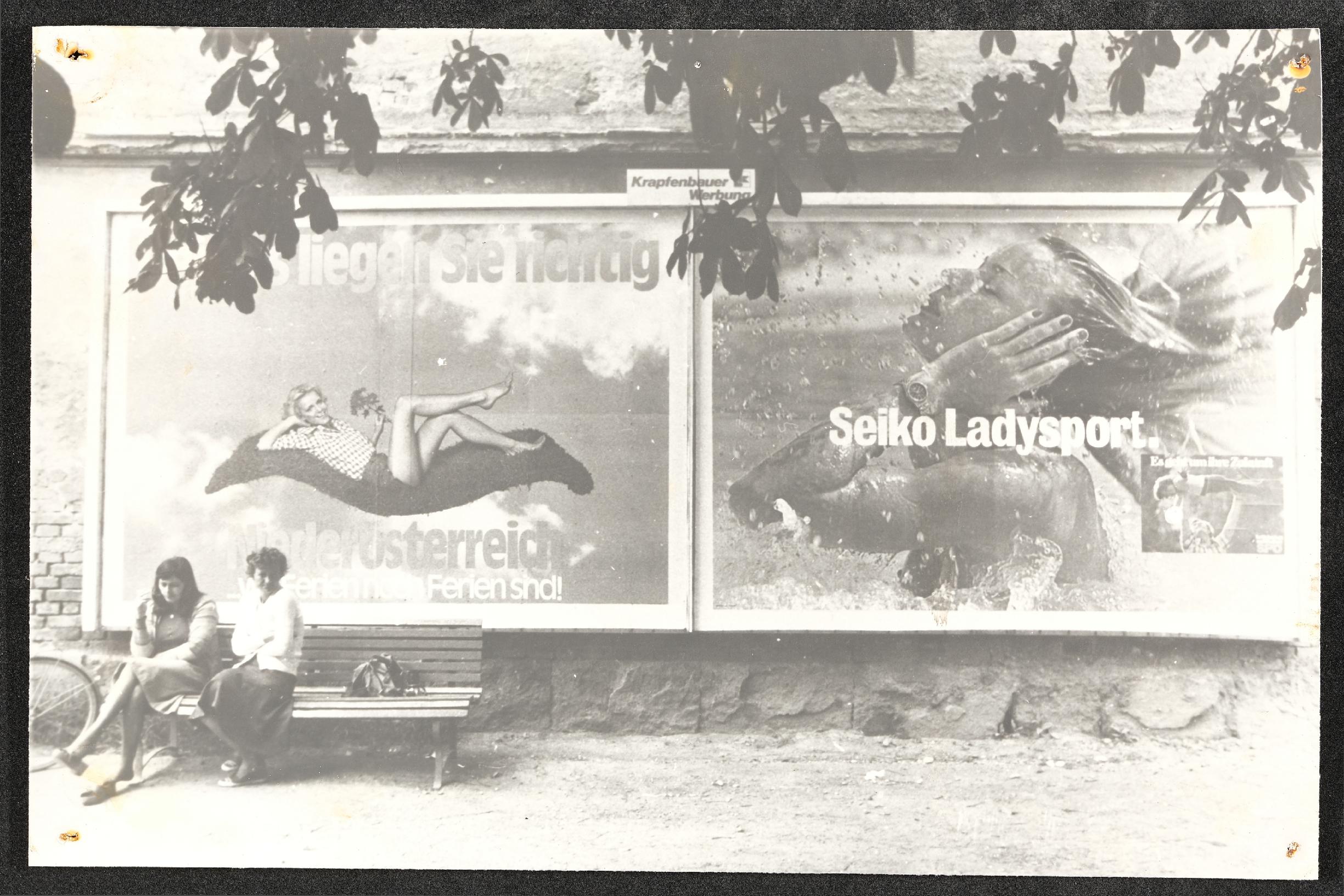 | Beschreibung | Sitzbank vor Werbeflächen |