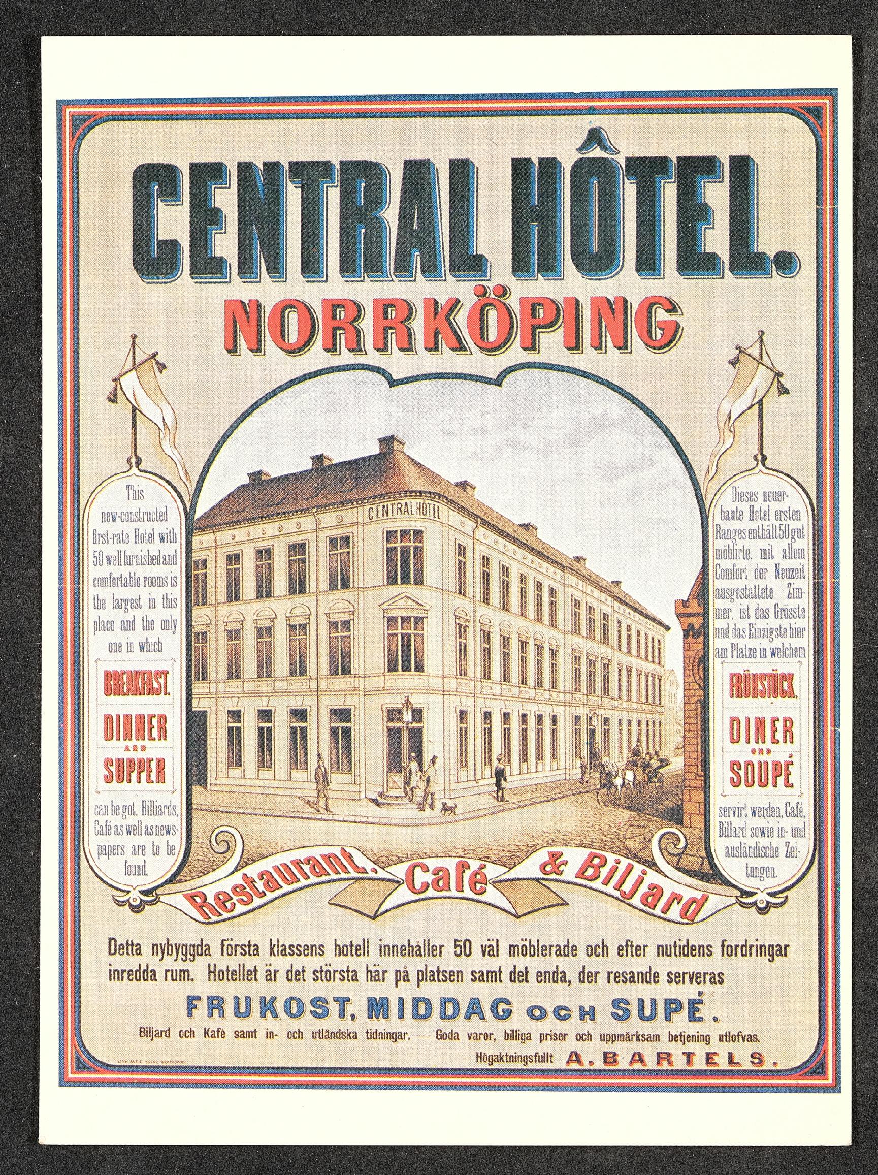 | Beschreibung | Ansichtskarte von 1900 mit Zeichnung vom Central Hotel Norrköping |