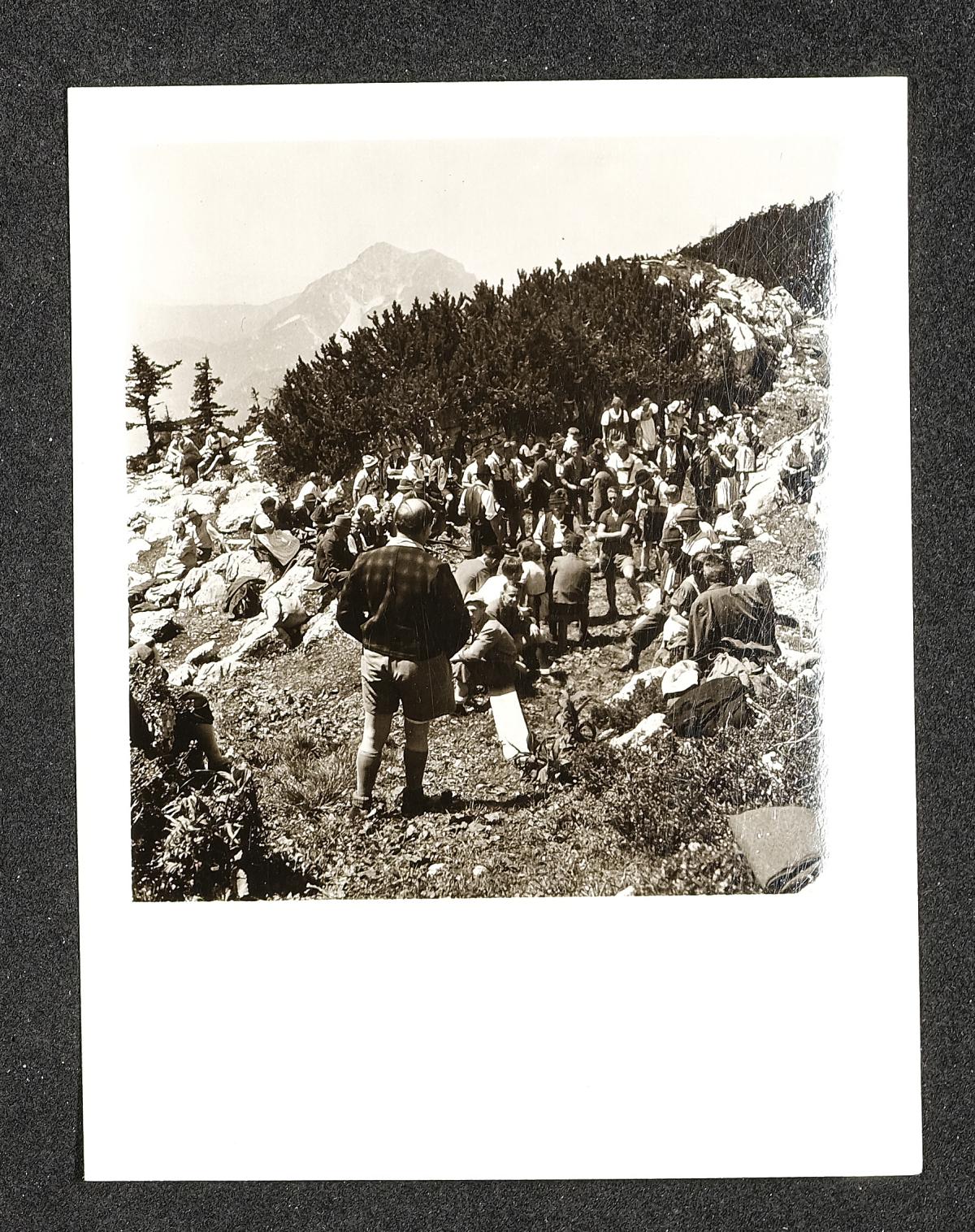| Titel | Wandergruppe beim Musizieren am Berg |