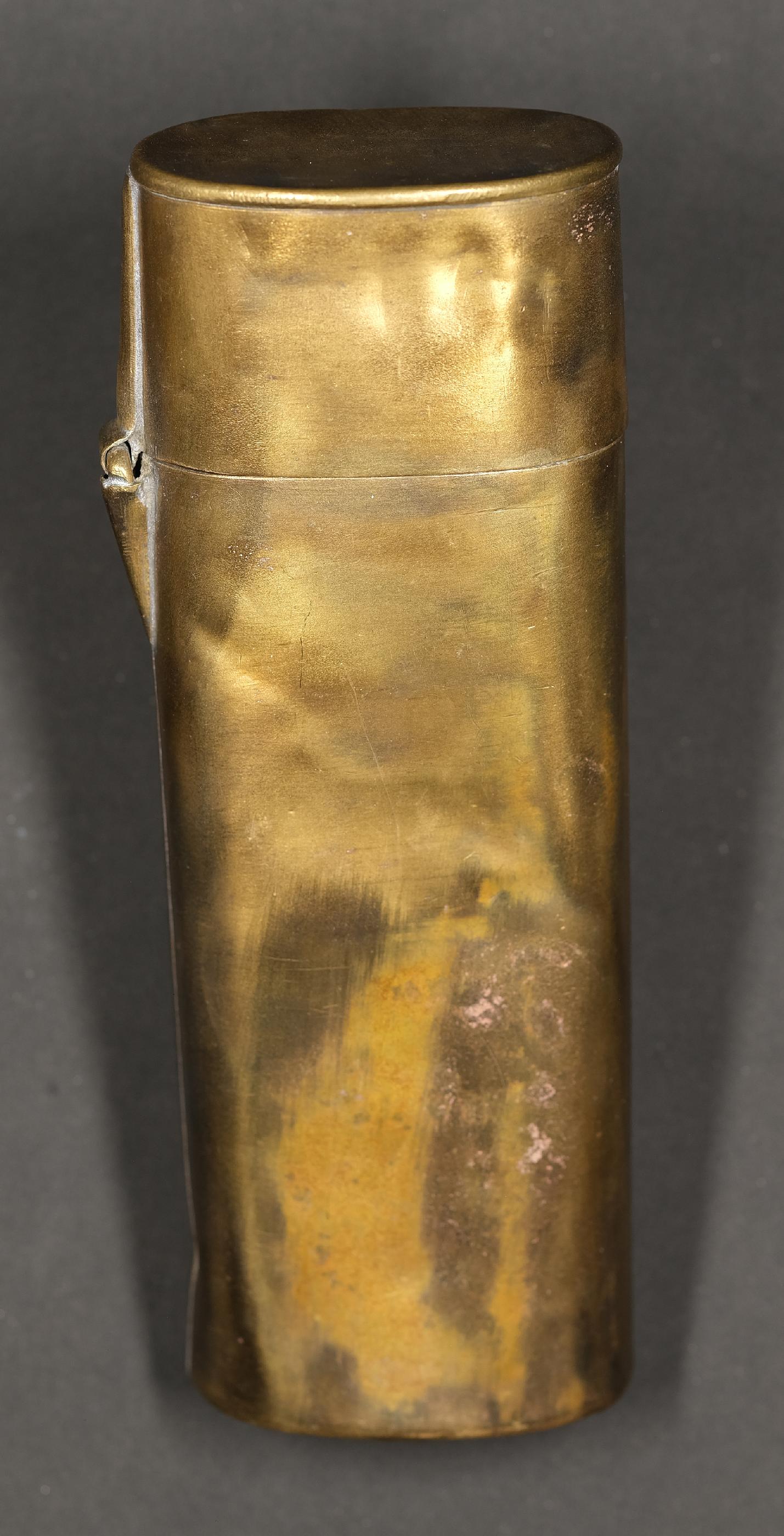 | Beschreibung | Blechdose mit Klappdeckel aus Messing |