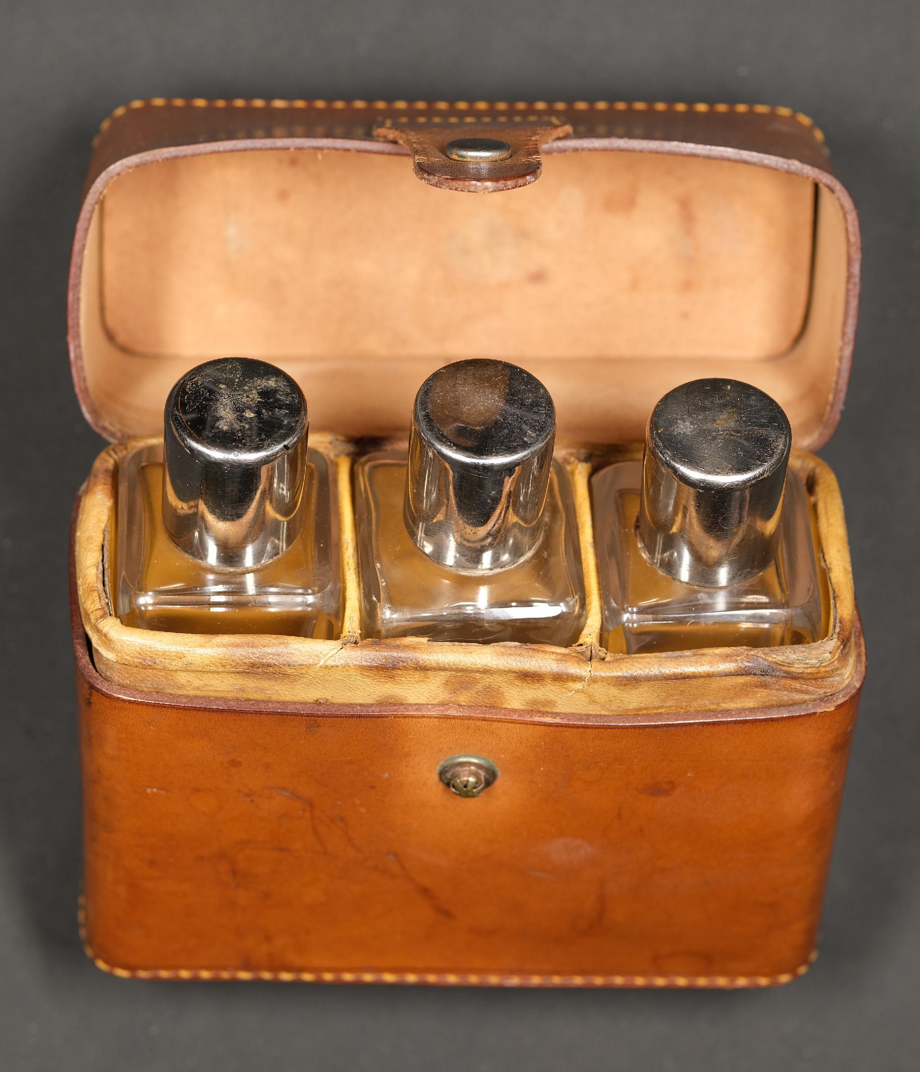| Beschreibung | Ledertasche mit drei Flaschen |