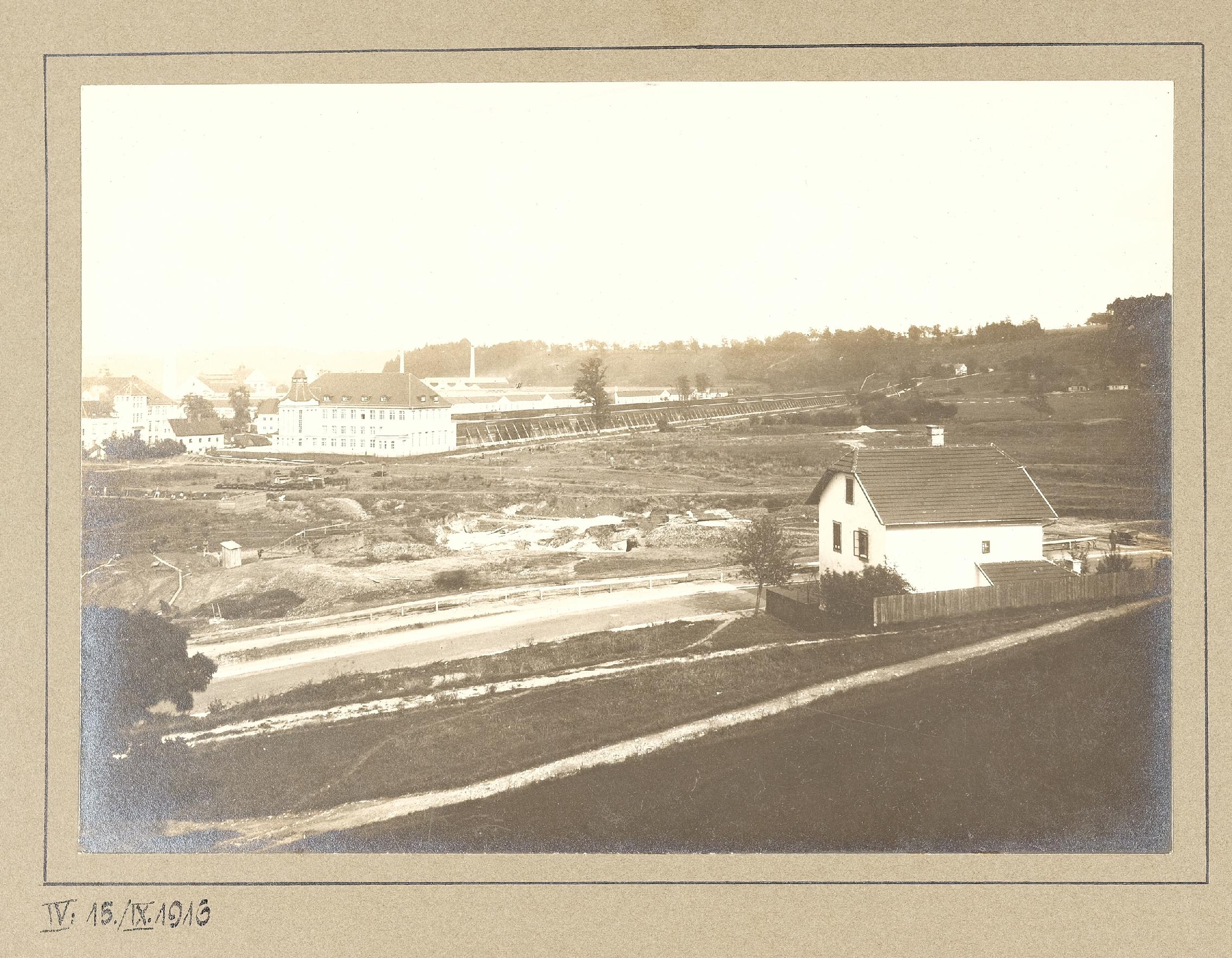 | Beschreibung | Gelände am 15. September 1913 während des Baus der Österreichischen Waffenfabriks-Gesellschaft Steyr entlang der Rudolfsbahn-Strecke |
