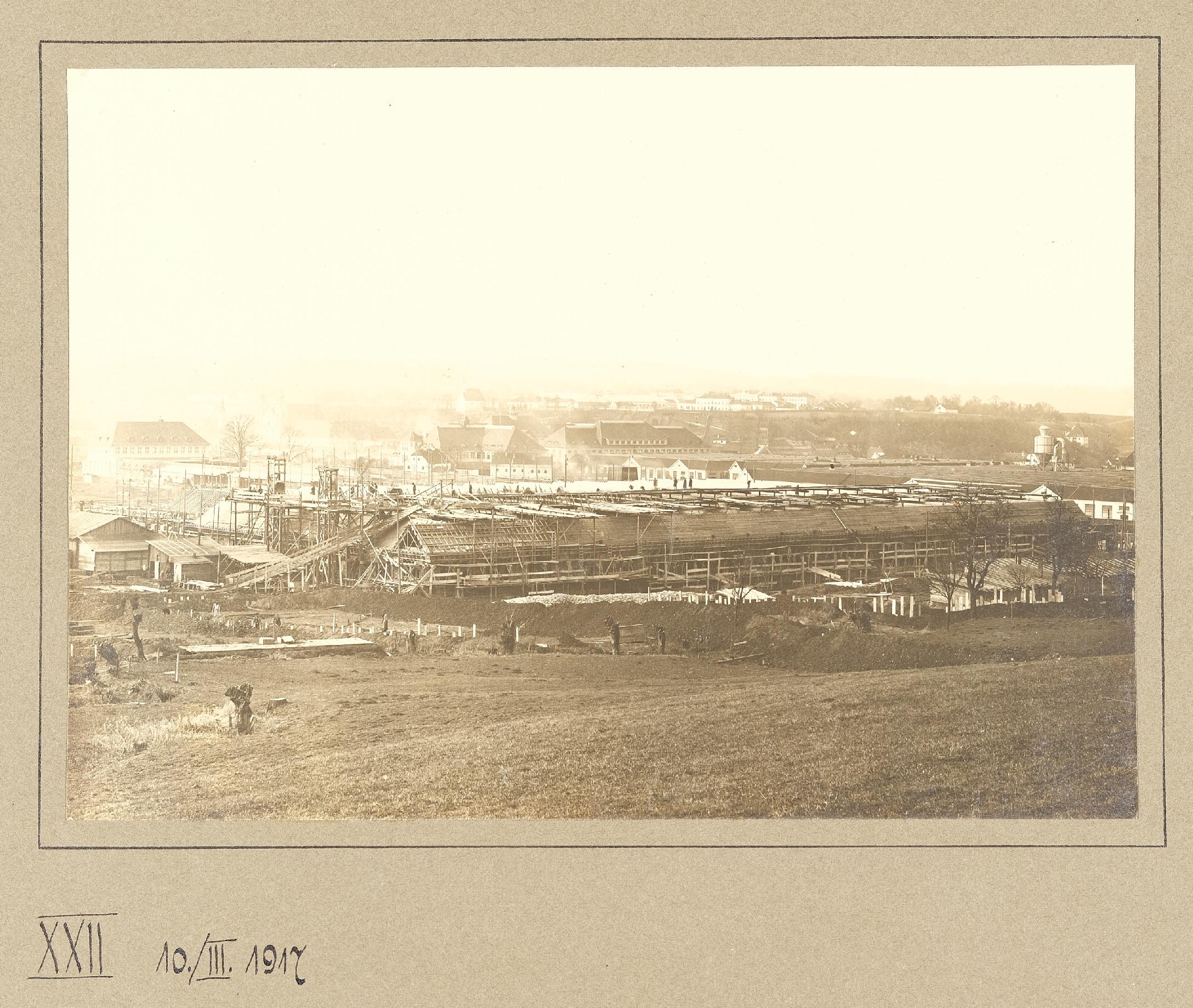 | Beschreibung | Bau der Österreichischen Waffenfabriks-Gesellschaft Steyr, Gelände am 10. März 1917 mit Blick Richtung Stadtteil Tabor |