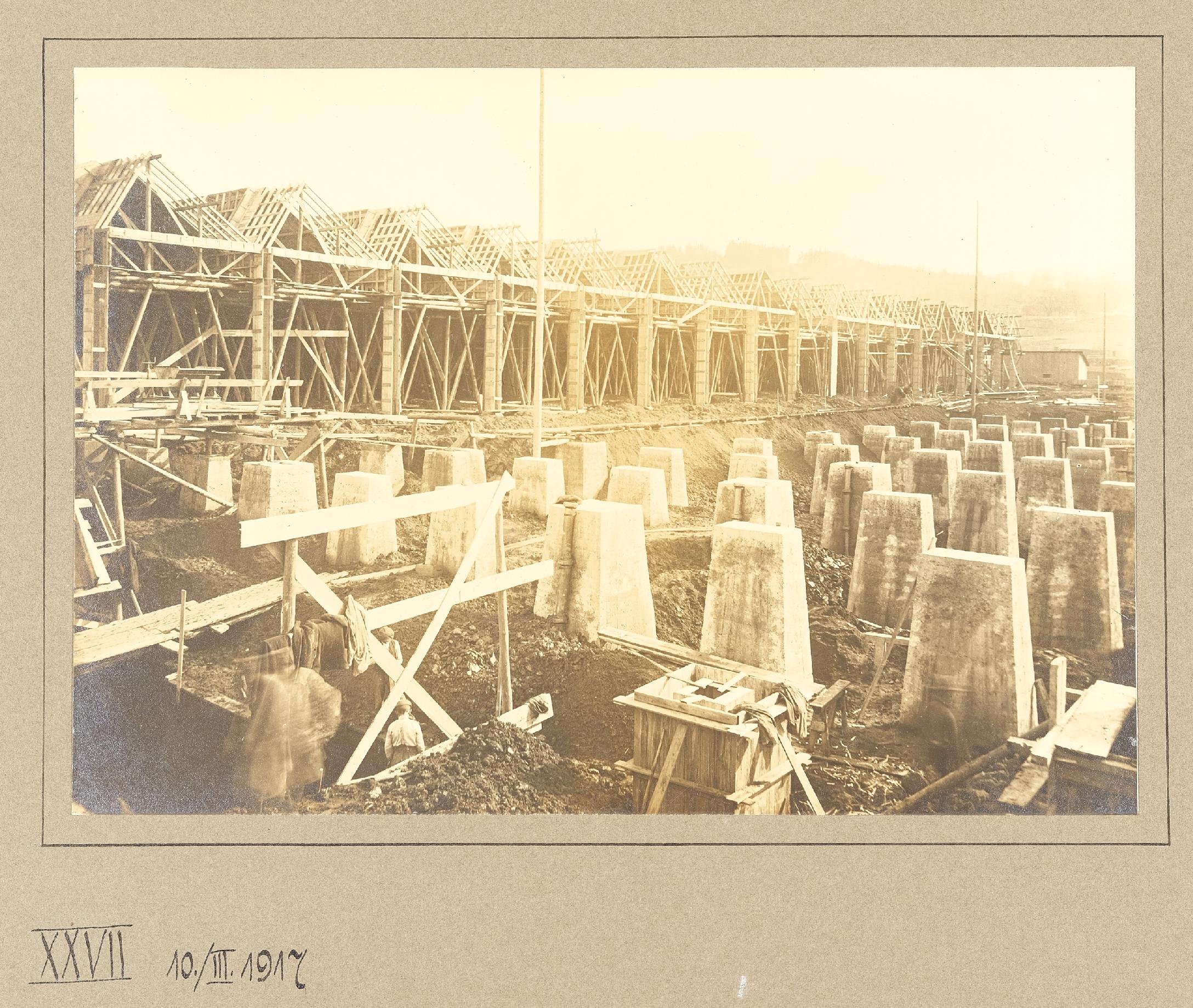 | Beschreibung | Fundamentbau für Betriebshallen der Österreichischen Waffenfabriks-Gesellschaft Steyr, Aufnahme vom 10. März 1917 |