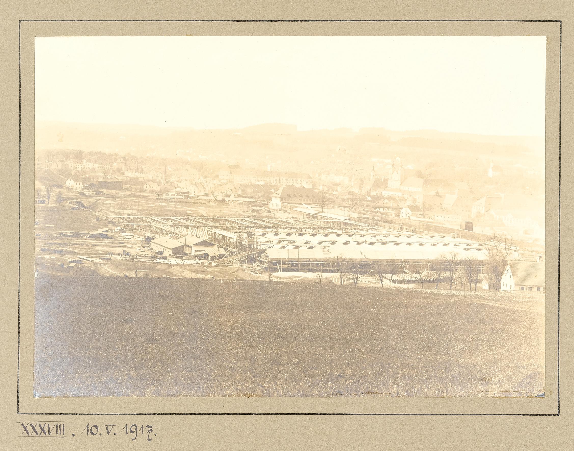 | Beschreibung | Baugelände der Österreichischen Waffenfabriks-Gesellschaft Steyr, Blick Richtung Schloss Lamberg und Taborturm, Aufnahme vom 10. Mai 1917 |
