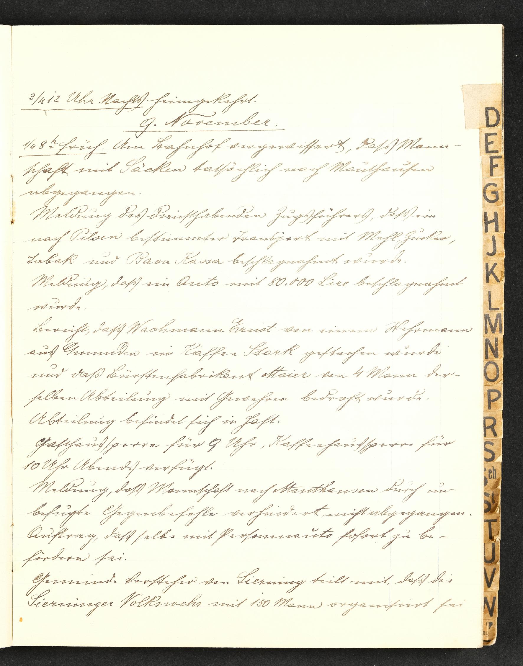 | Beschreibung | Buchstabenabschnitt D, Eintrag vom 9. November 1918 |
