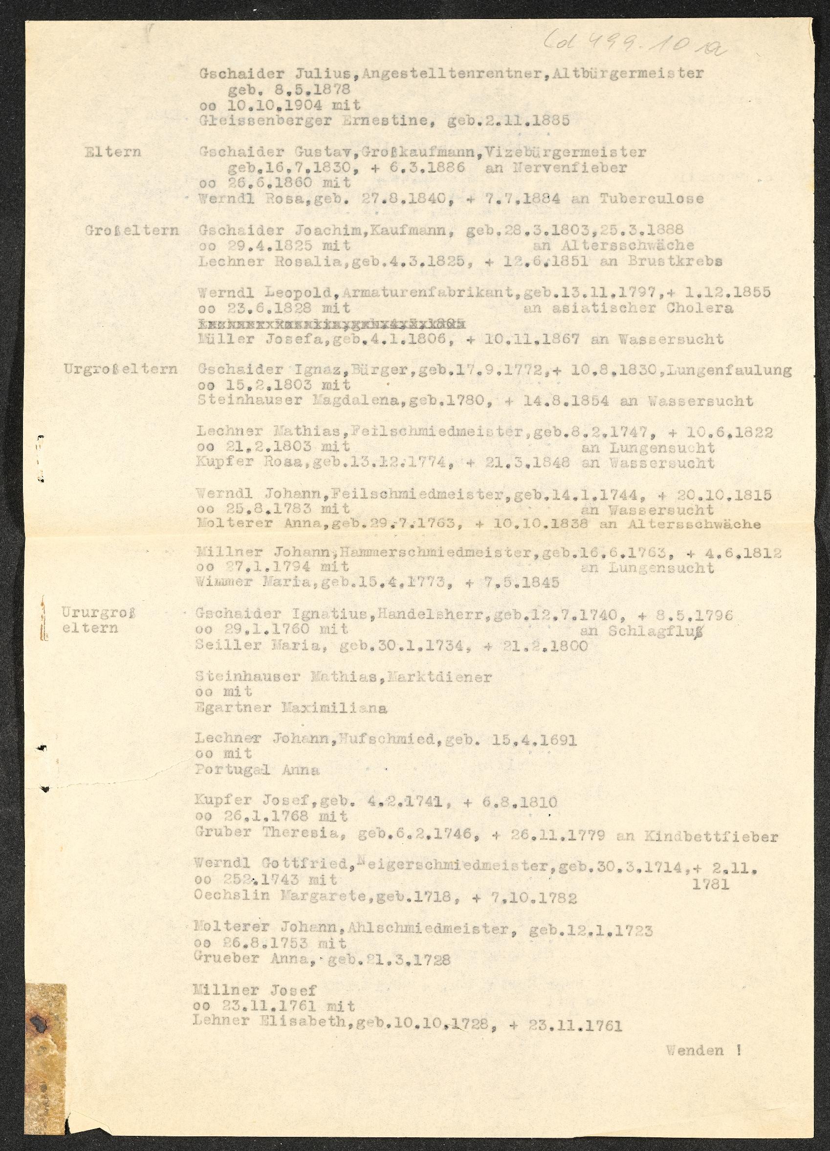| Beschreibung | Julius Gschaiders Stammbaum |