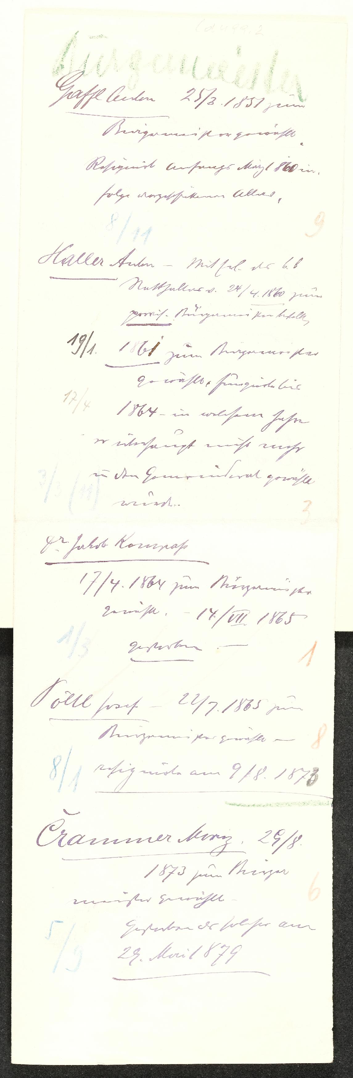 | Beschreibung | ins Tagebuch eingeklebte Auflistung der Steyrer Bürgermeister ab 25. Februar 1851 bis 29. Mai 1879 |
