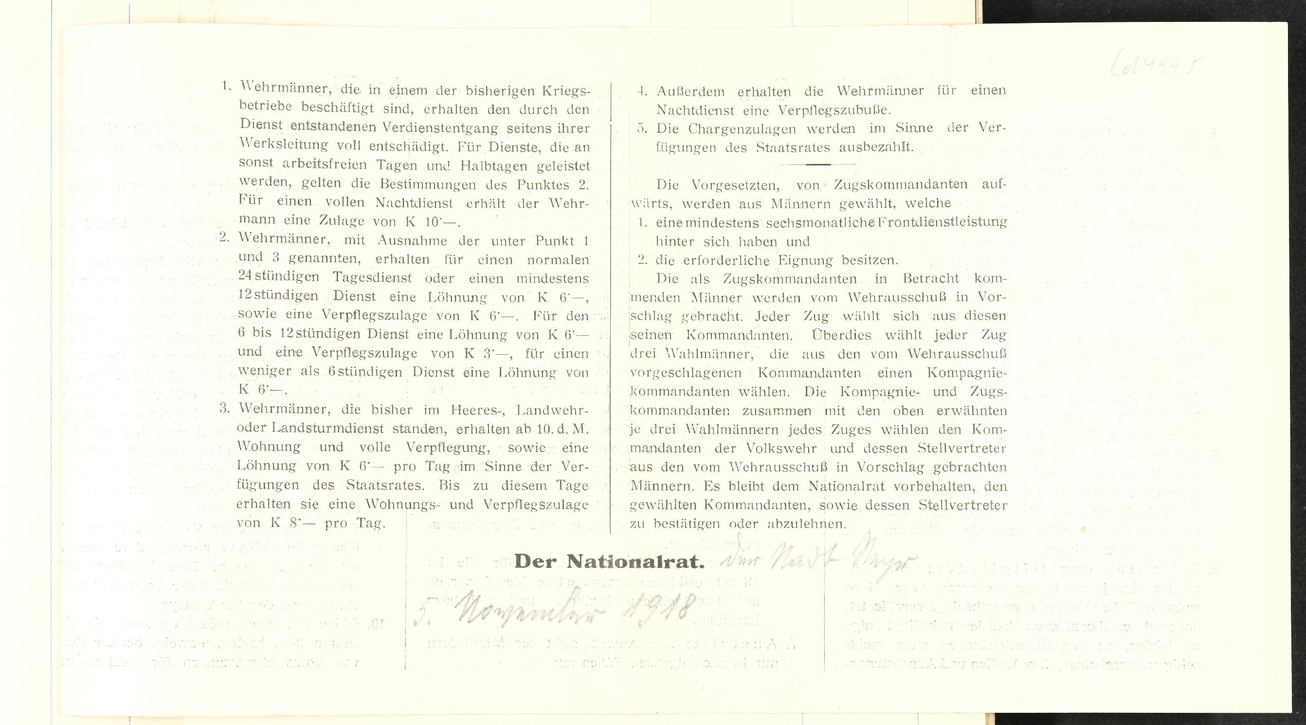 | Beschreibung | Vorläufige Satzungen (Rückseite) der Volkswehr in Steyr vom 5. November 1918 |