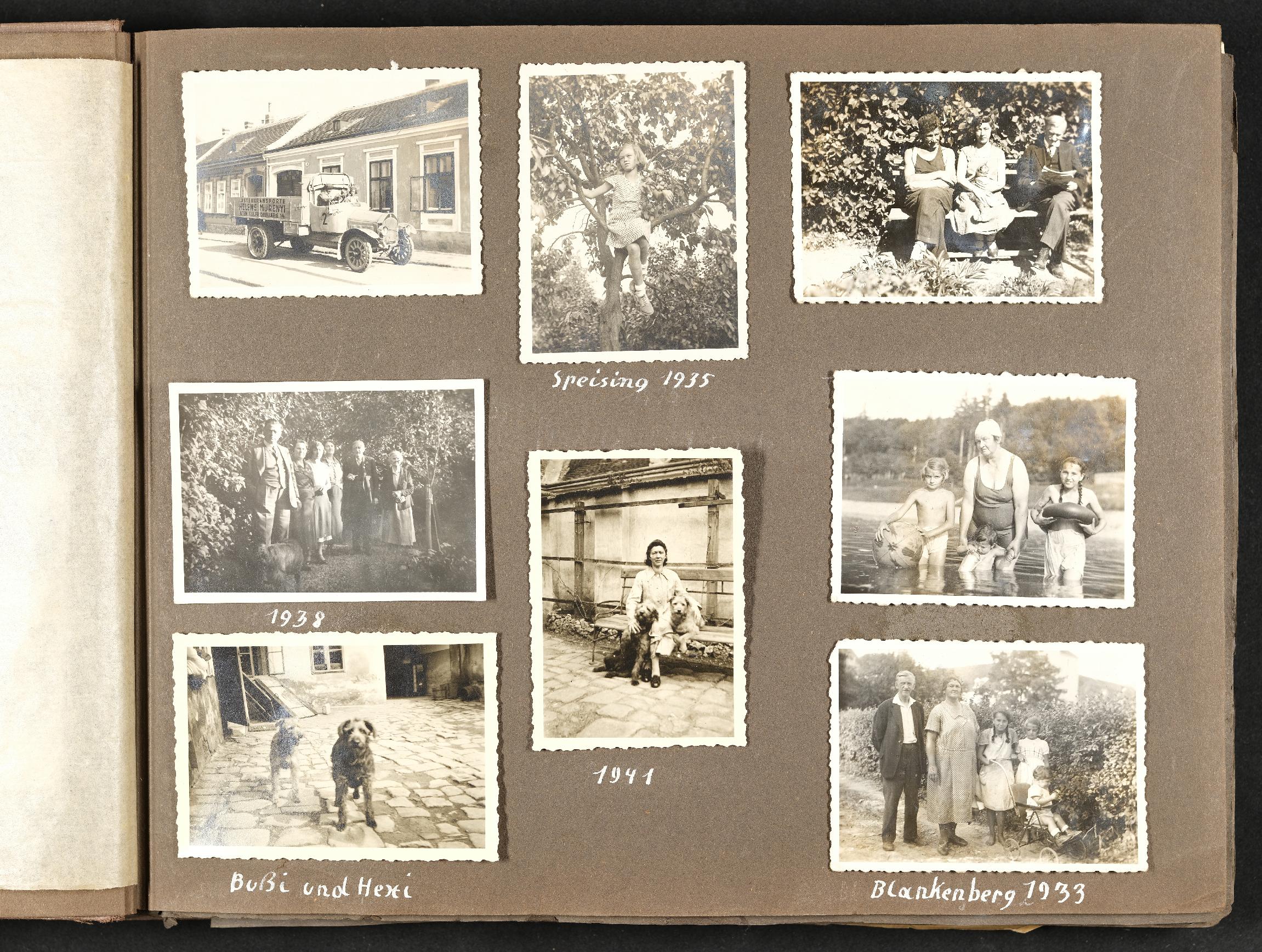| Beschreibung | Fotos von 1933 bis 1941 im privaten Fotoalbum mit Familienfotos, Freizeitfotos, Urlaubsfotos und Fotos aus dem Einsatz im 2. Weltkrieg, am ersten Foto ein Lastwagen mit Aufschrift "Lastentransporte Helene Murenyi, Wien 13. Feldkellergasse 14" |