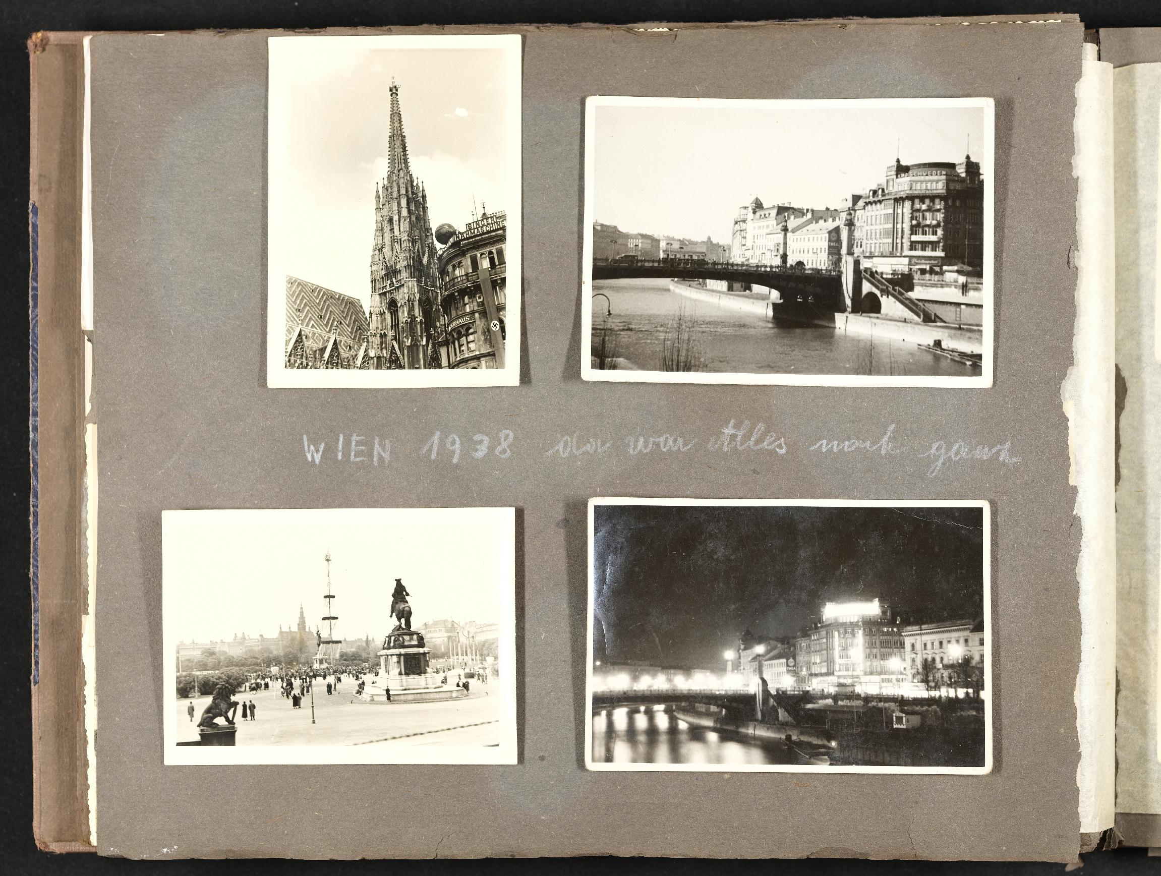| Beschreibung | privates Fotoalbum mit Familienfotos, Freizeitfotos, Urlaubsfotos und Fotos aus dem Einsatz im 2. Weltkrieg, Privatfotos: "Wien 1938 da war Alles noch ganz" |