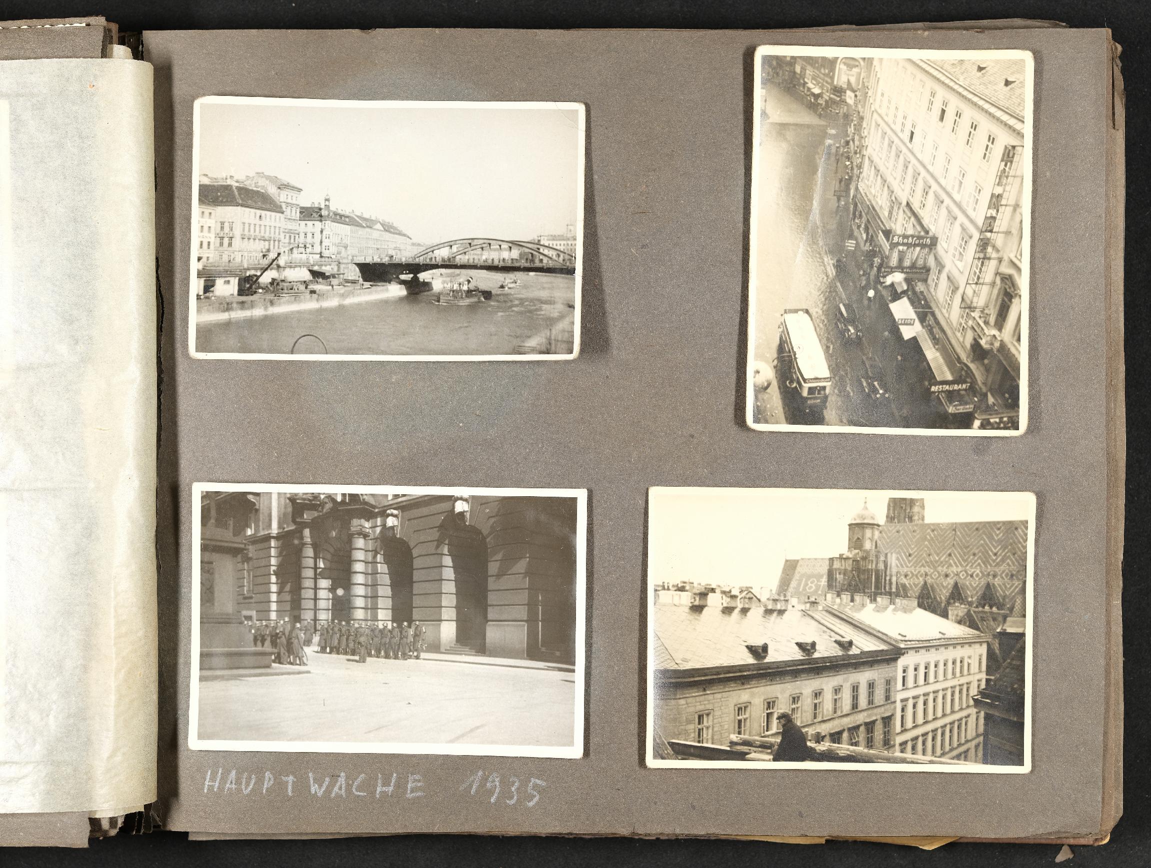 | Beschreibung | privates Fotoalbum mit Familienfotos, Freizeitfotos, Urlaubsfotos und Fotos aus dem Einsatz im 2. Weltkrieg, Wien-Fotos, eines davon "Hauptwache 1935" |
