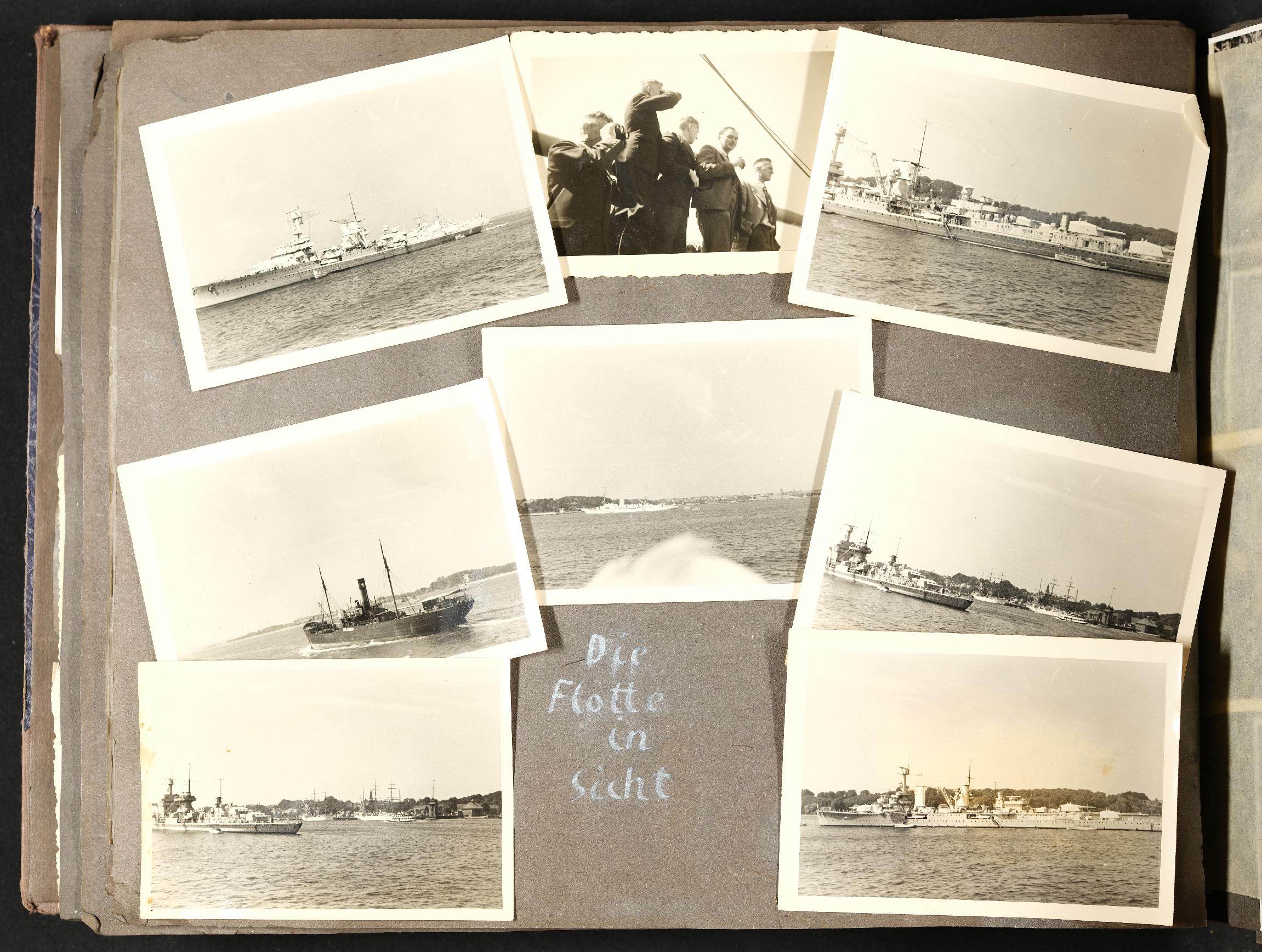 | Beschreibung | privates Fotoalbum mit Familienfotos, Freizeitfotos, Urlaubsfotos und Fotos aus dem Einsatz im 2. Weltkrieg, Fotos: "Die Flotte in Sicht" |