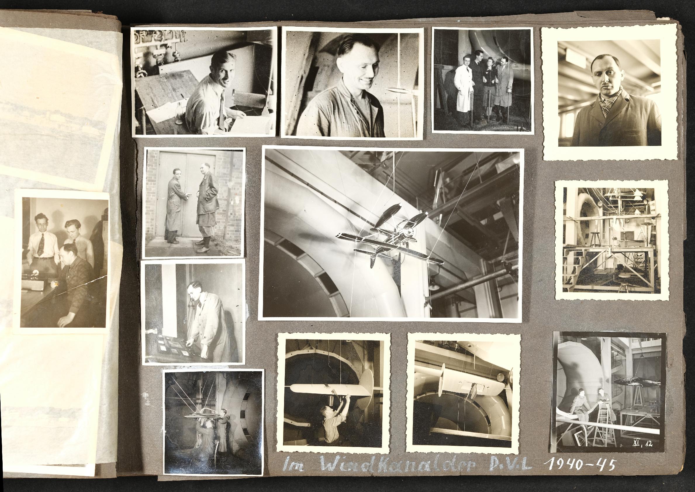 | Beschreibung | privates Fotoalbum mit Familienfotos, Freizeitfotos, Urlaubsfotos und Fotos aus dem Einsatz im 2. Weltkrieg, Fotos: "Im Windkanal der D.V.L 1940 - 45" |