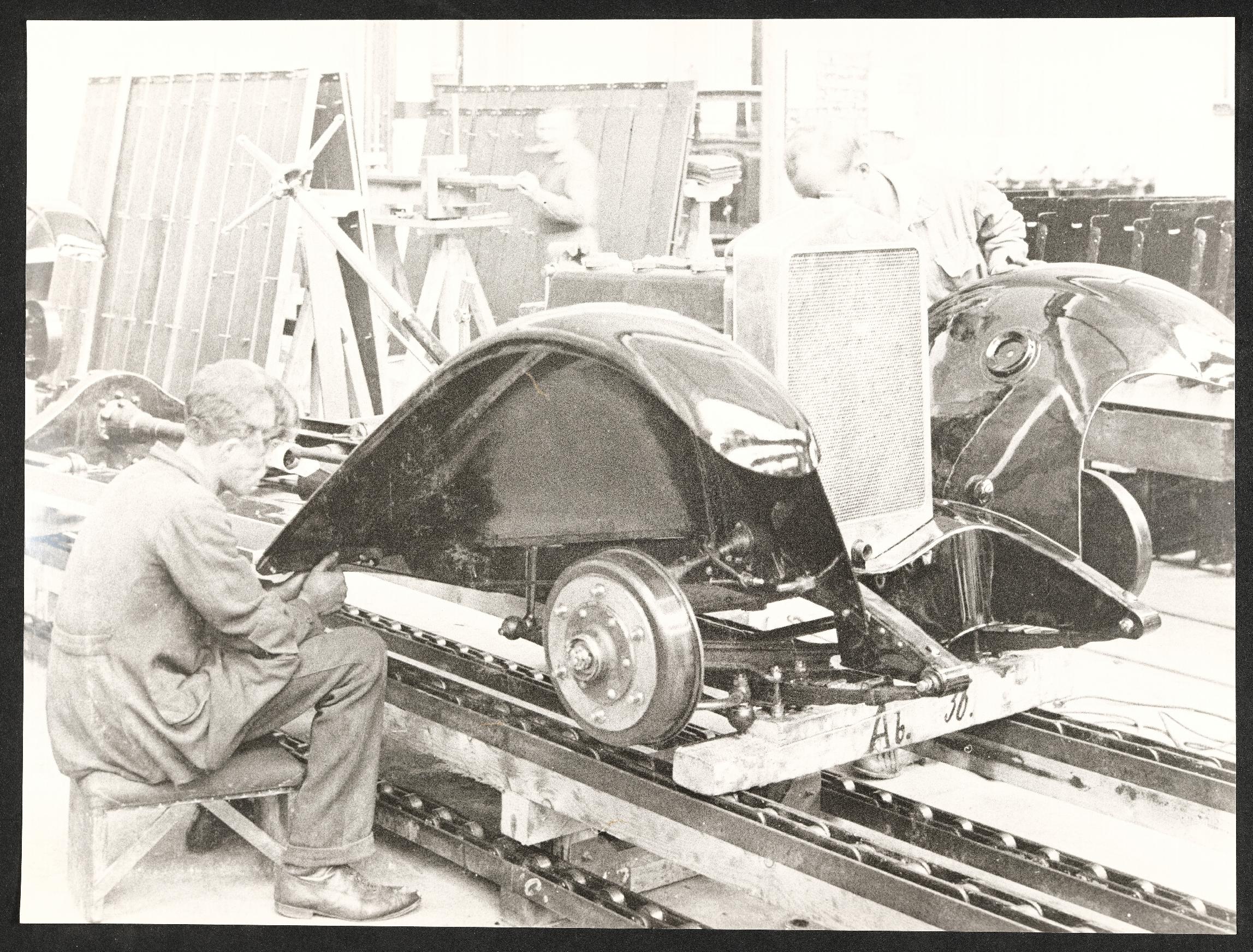 | Beschreibung | Steyr-Werke Montageband Type 20, Montage der vorderen Kotflügel |