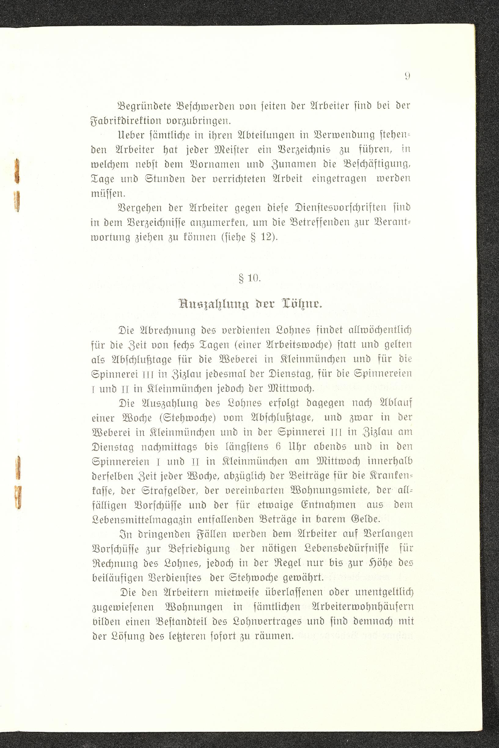 Arbeitsordnung der Actien-Gesellschaft der Kleinmünchner Baumwoll-Spinnereien und mechanischen Weberei
