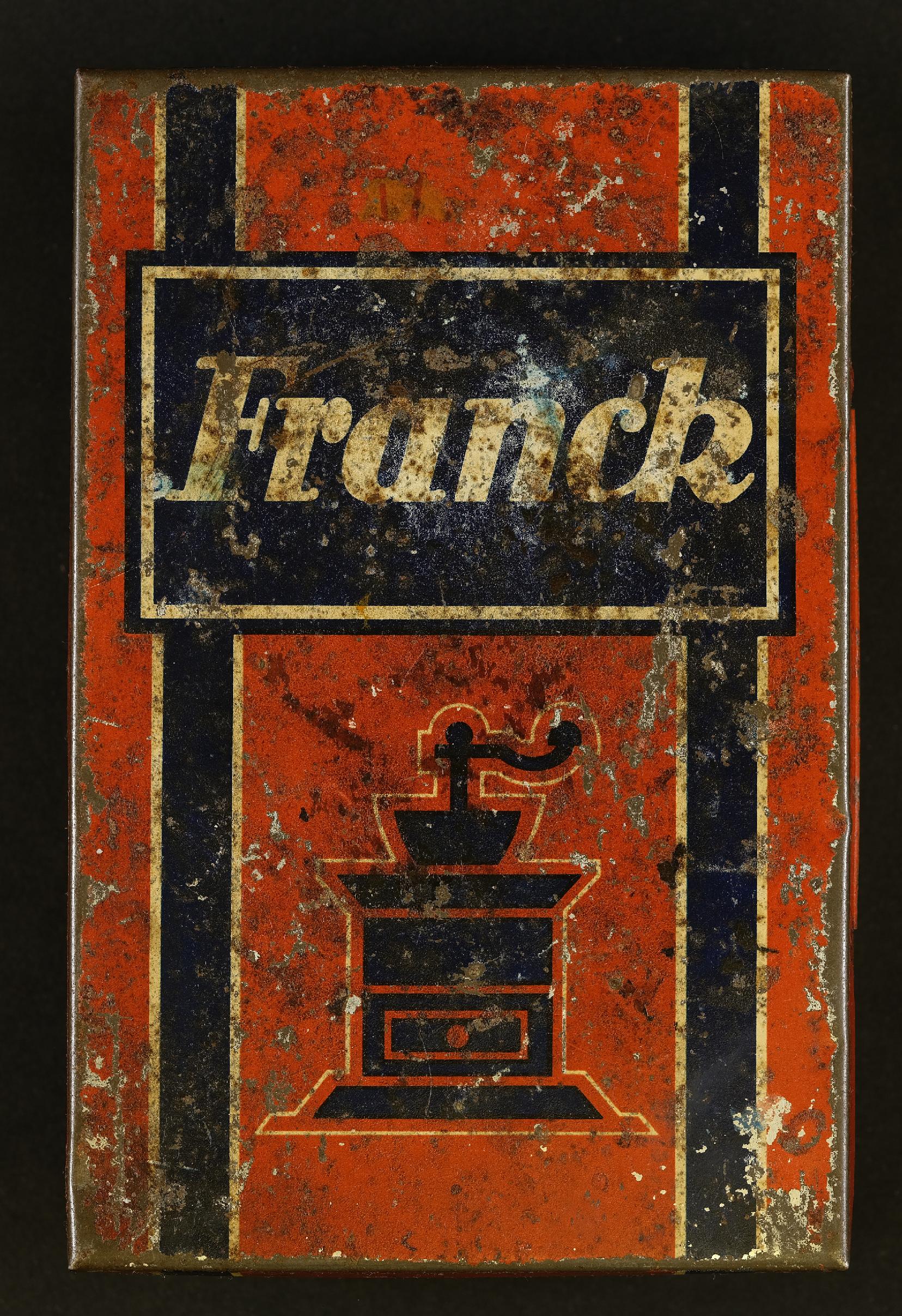 | Beschreibung | Blechdose Kaffeezusatz der Firma Heinrich Franck Söhne AG, Vorderansicht, Innenansicht, Seitenansicht, Rückansicht |
