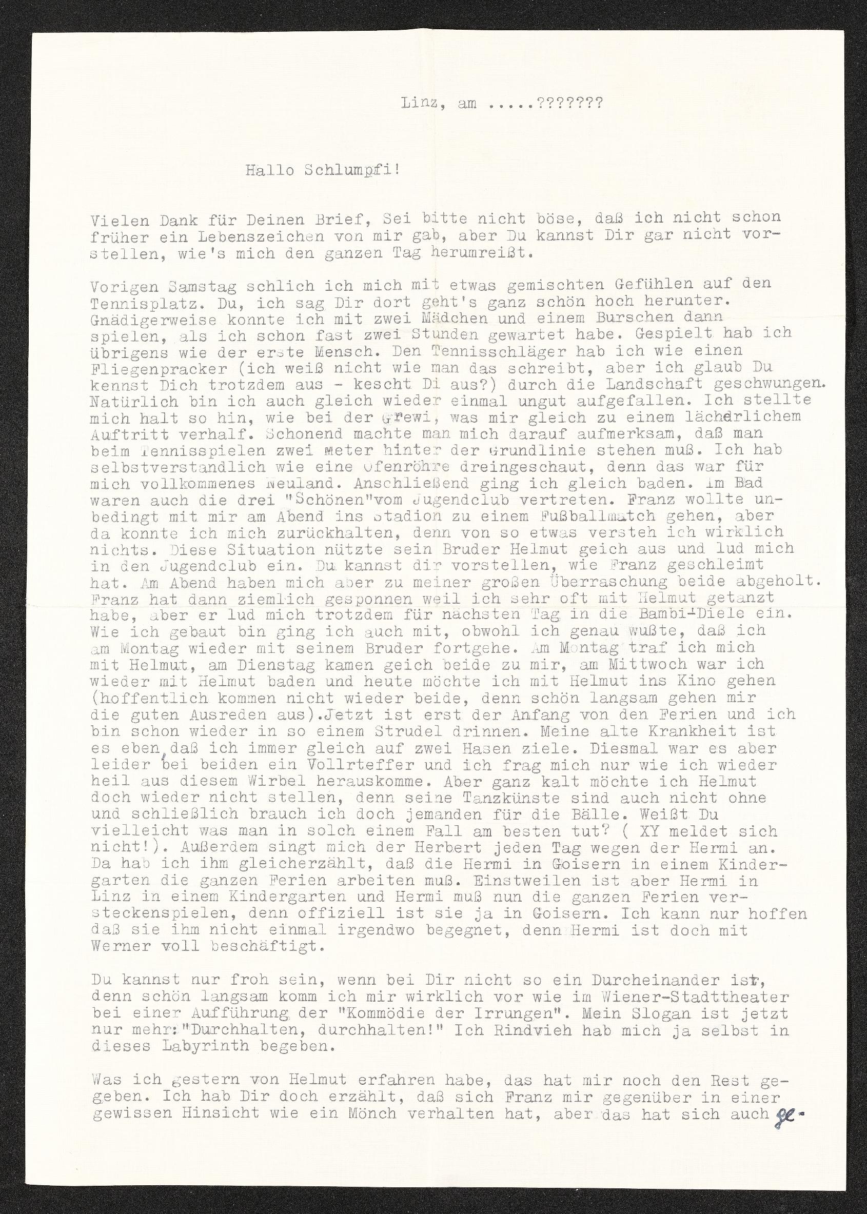 | Beschreibung | Brief von Anita an Veronika Erntl, die ihr von ihrem Alltag und aktuellen Ereignissen in ihrem Leben berichtet. |
