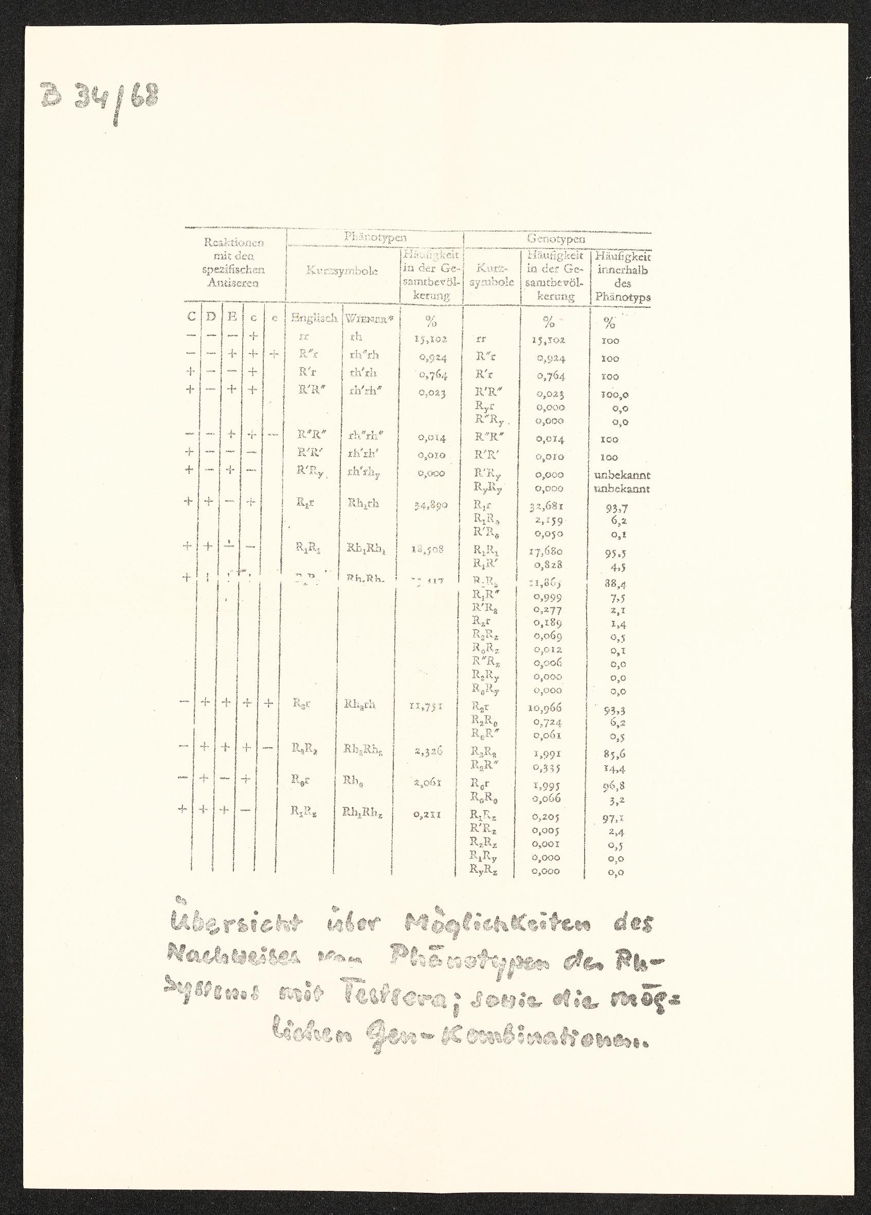 | Beschreibung | Vorderseite der Beilage mit einer medizinischen Übersicht über Phänotypen und Genotypen |