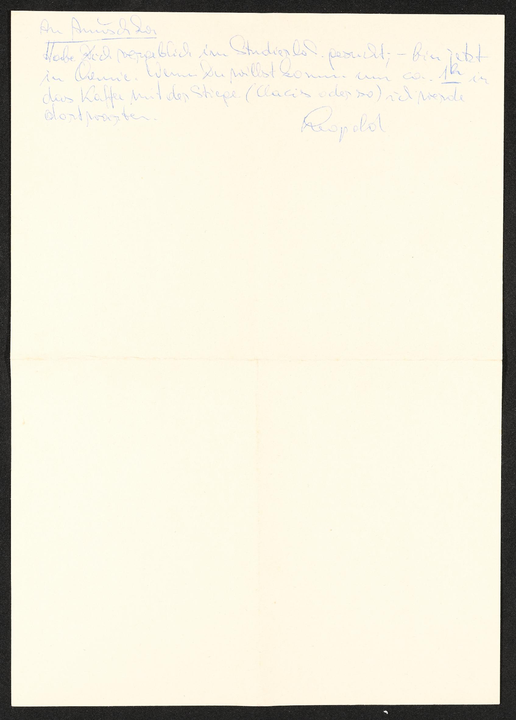 | Beschreibung | Rückseite der Beilage mit persönlicher Nachricht von Leopold |