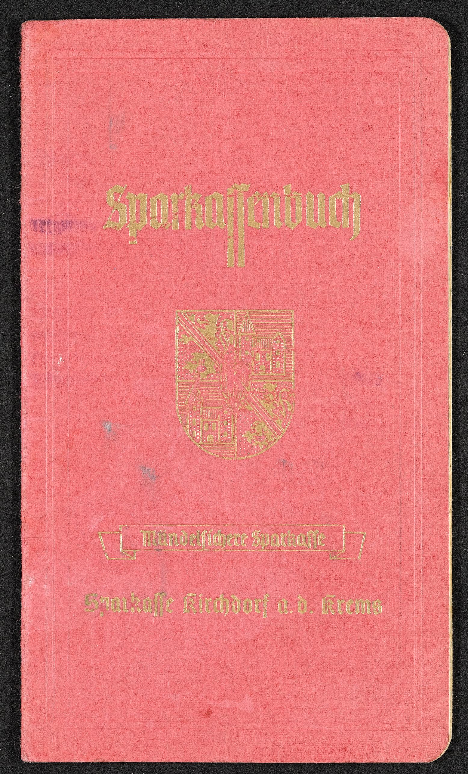 | Beschreibung | Umschlagseite außen des Sparkassenbuches der Sparkasse Kirchdorf an der Krems von Veronika Erntl. Einträge von 1958 bis 1974. |