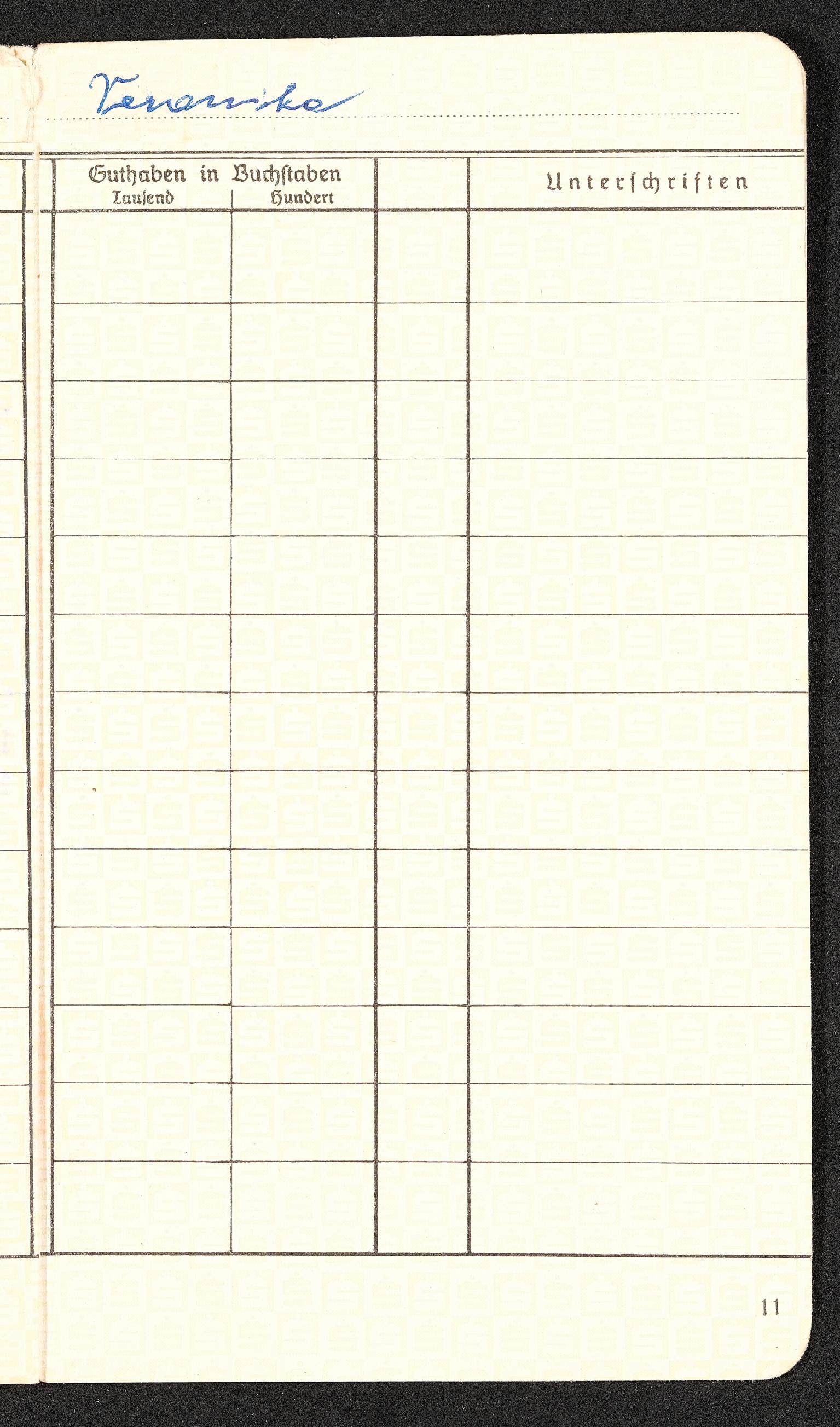 | Beschreibung | Seite 11 des Sparkassenbuches der Sparkasse Kirchdorf an der Krems von Veronika Erntl. Einträge von 1958 bis 1974. |