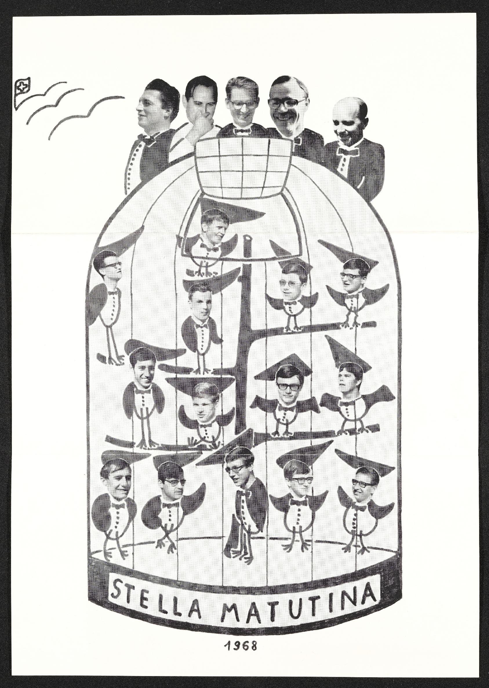 | Beschreibung | Vorderseite der Collage des Jahrgangs 1968 des Stella Matutina, ein privates Jesuitengymnasium in Feldkirch, Vorarlberg, zur Ehrung des Universitätsabschlusses einiger Absolventen. |