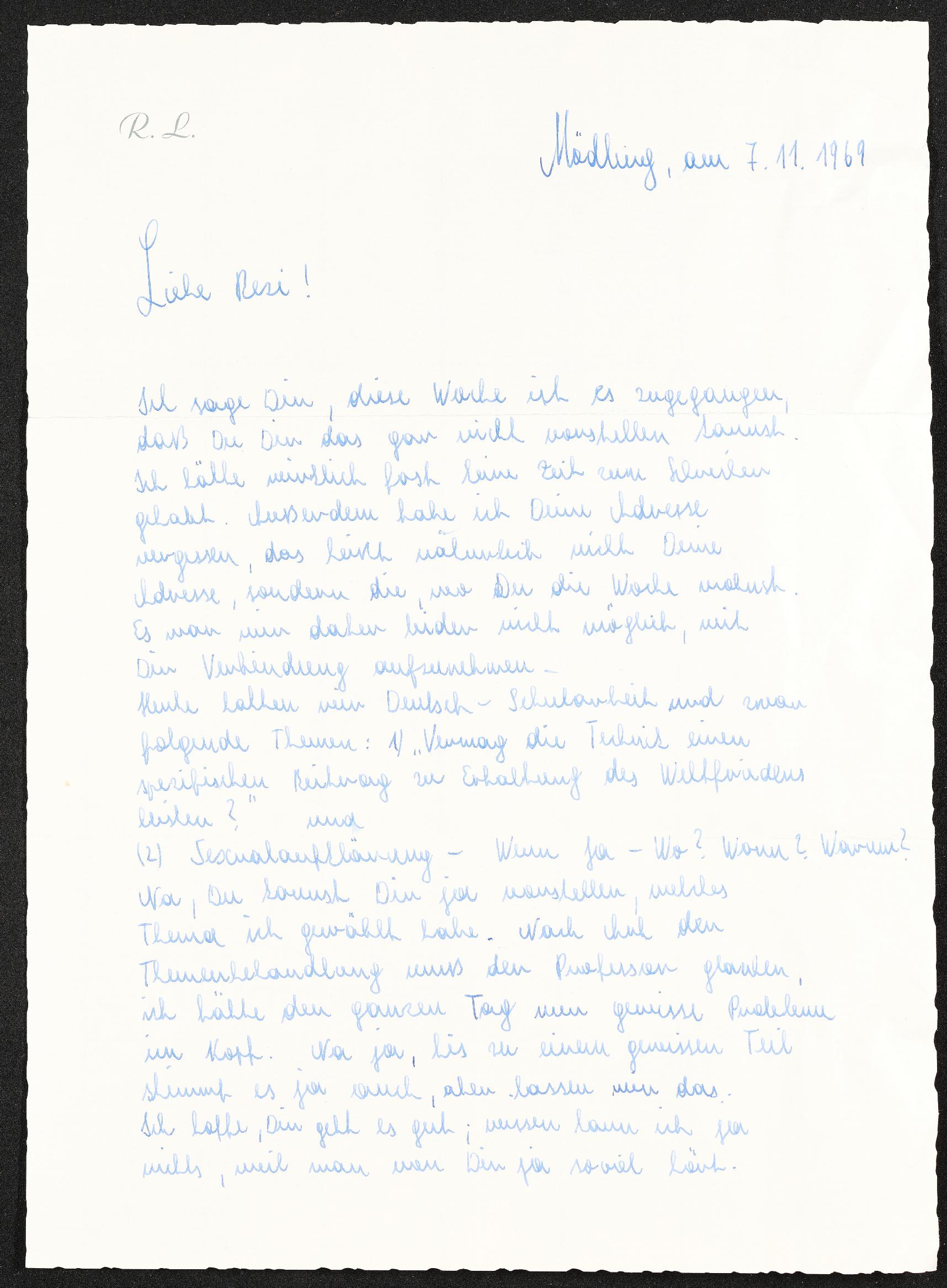 | Beschreibung | Brief von Rainhart Lichtenegger an Veronika Erntl, 7. November 1969 |