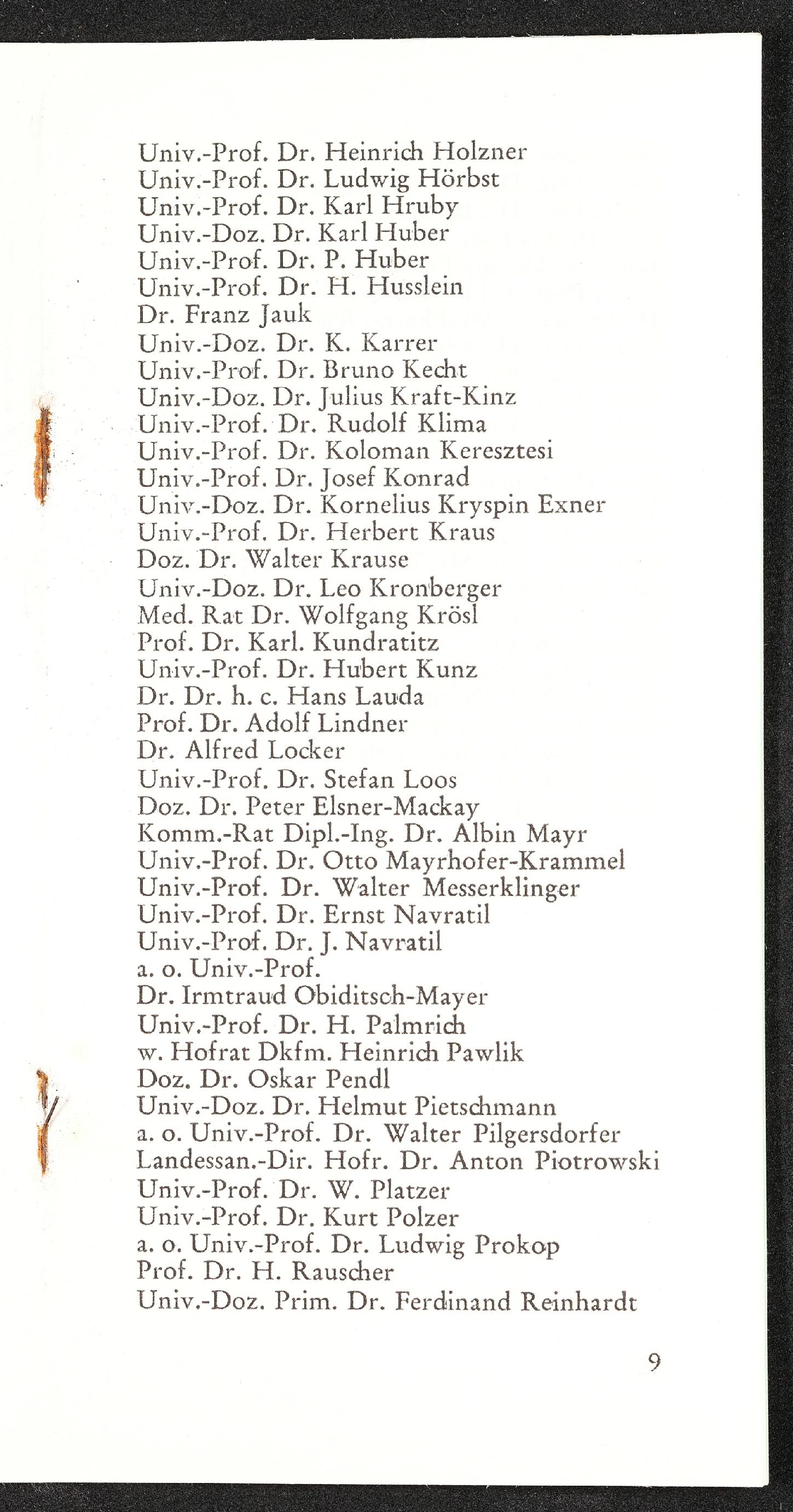 | Beschreibung | Einladung zum 1. Ball der Medizinstudenten an der Universität Wien am 15. November 1969, Seite 9, Ehrenkomitee |