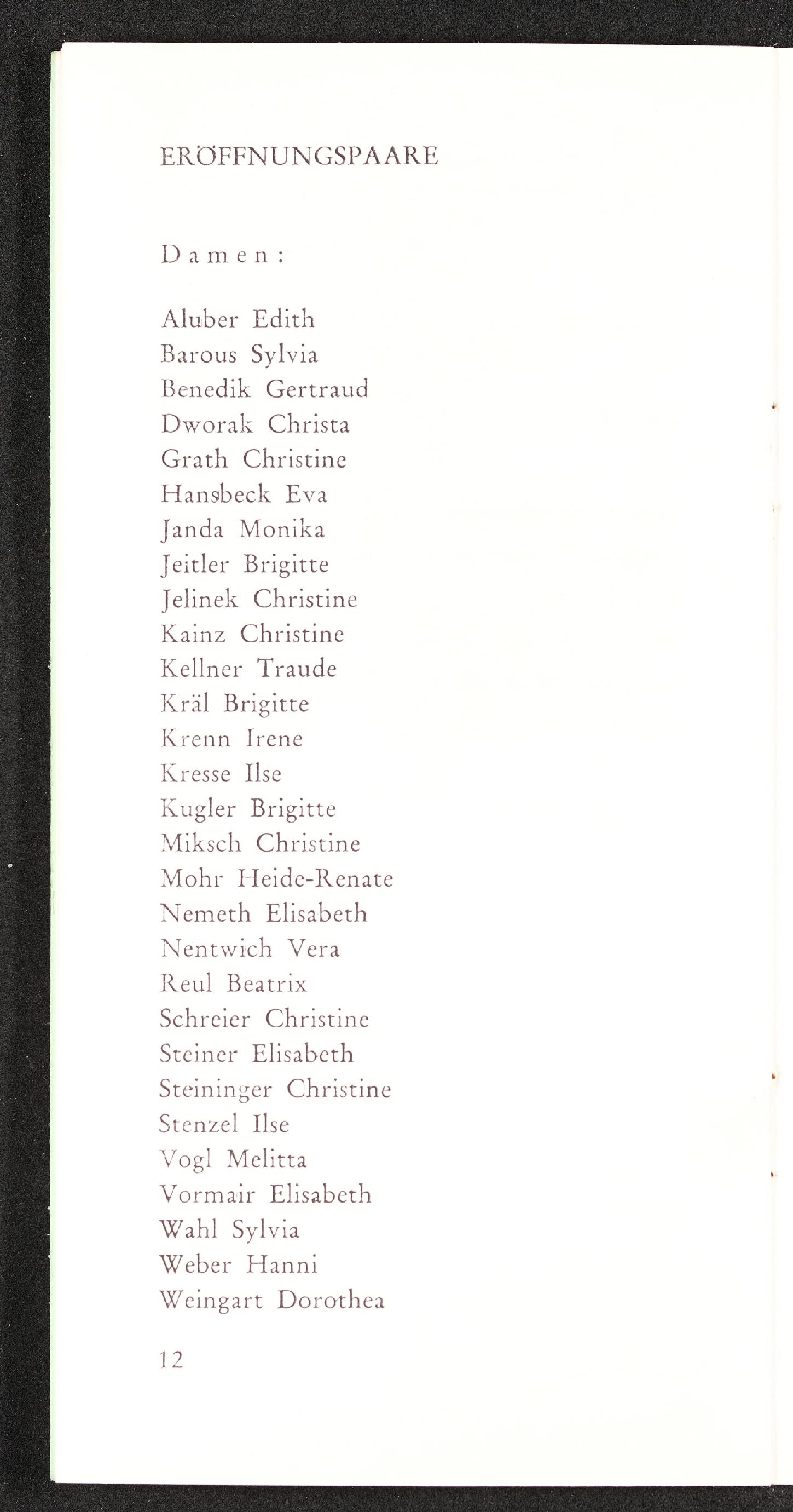 | Beschreibung | Einladung zum 1. Ball der Medizinstudenten an der Universität Wien am 15. November 1969, Seite 12, Eröffnungspaare Damen |