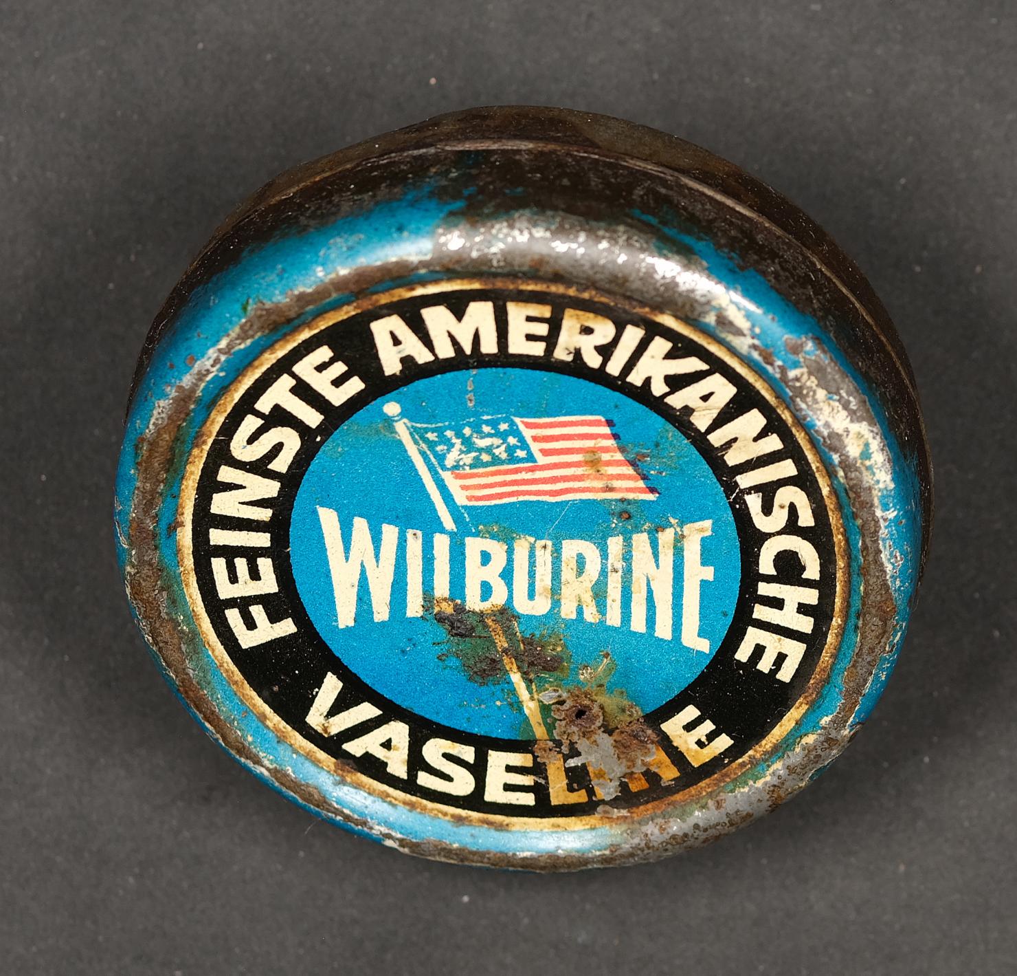 | Beschreibung | Blechdose, Wuburine feinste amerikanische Vaseline |