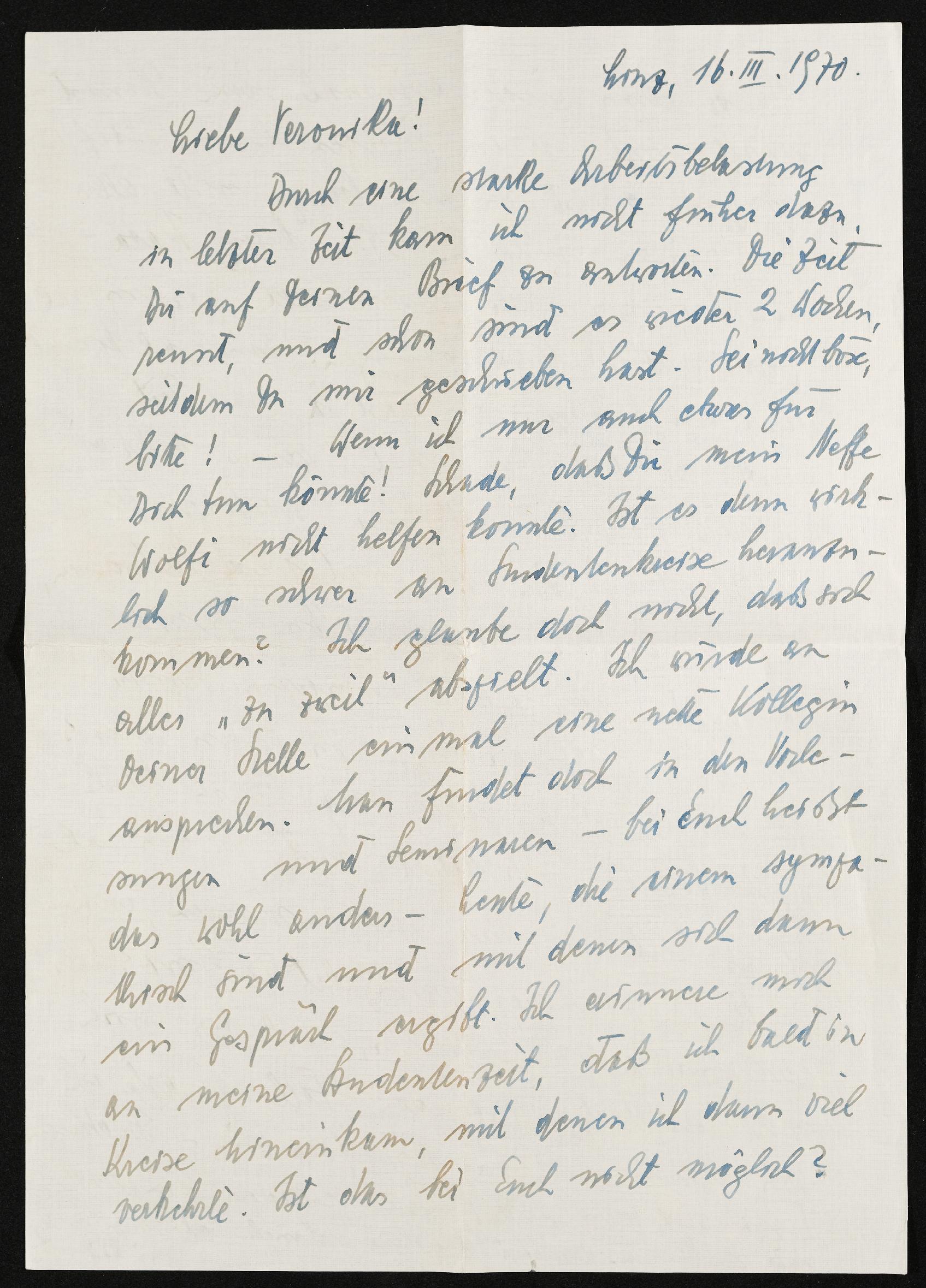 | Beschreibung | Brief an Veronika Erntl, 16. März 1970 |